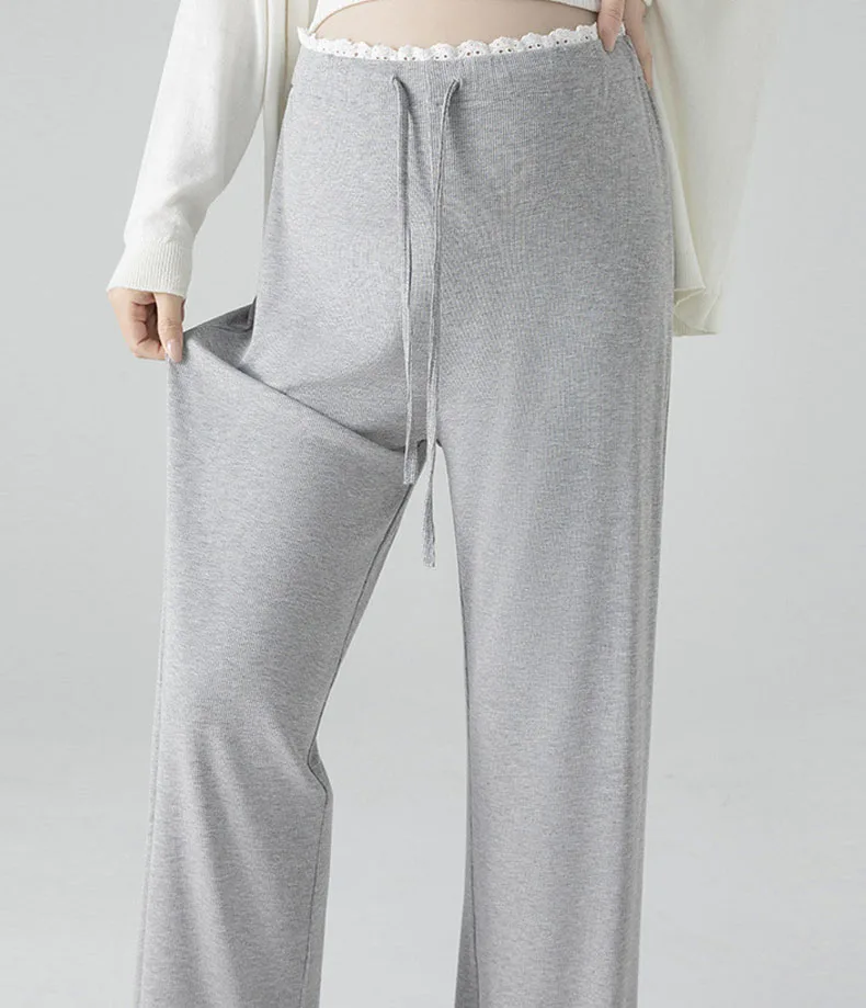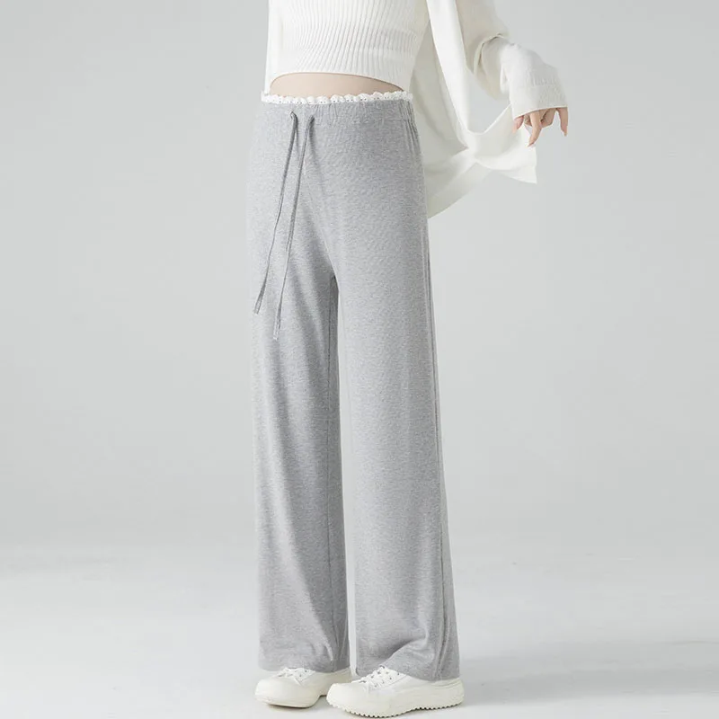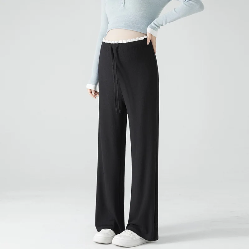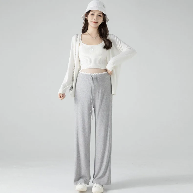 Comprar Pantalones de maternidad de cintura alta, pantalones de oficina holgados plisados de pierna ancha para mujer, pantalones oficiales, pantalones rectos para mujeres embarazadas