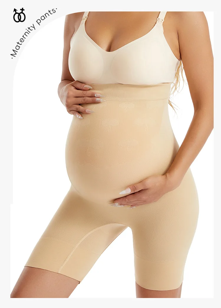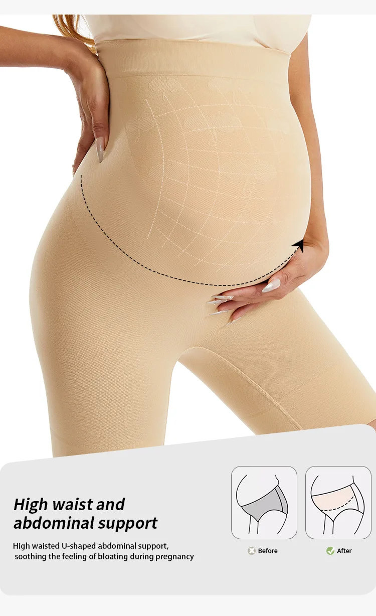 Pantalones de maternidad de talla grande sin costuras para mujer, Capri de cintura alta con soporte para el vientre, pantalones de seguridad suaves de alta elasticidad para embarazo