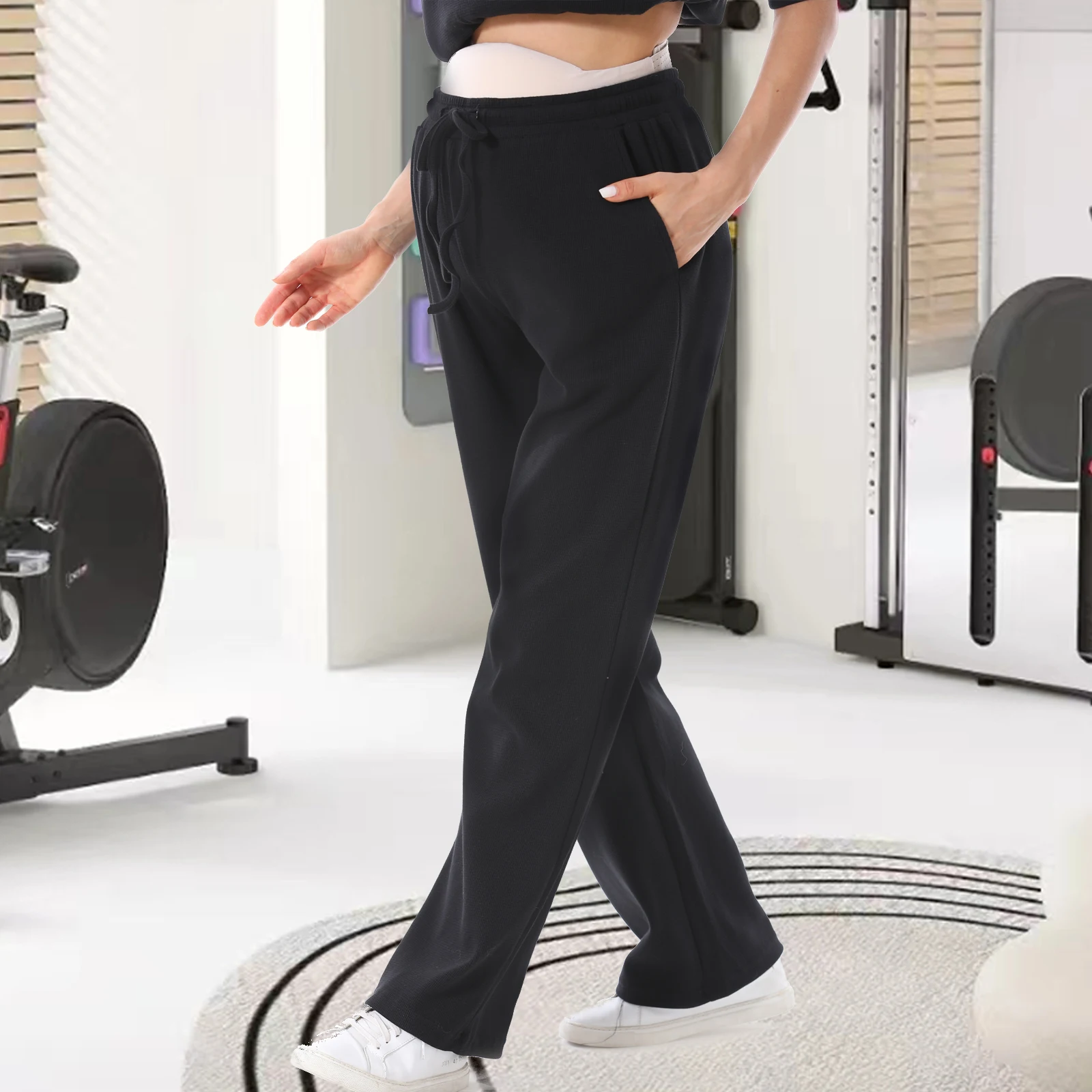 Comprar Pantalones de maternidad de talla grande para mujeres embarazadas, pantalones con cordón, pantalones de chándal informales, pantalones de pierna ancha para embarazo, ropa de calle para Otoño e Invierno