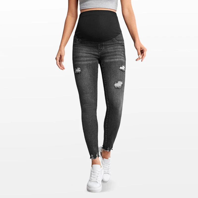 Comprar Pantalones para mujeres embarazadas, pantalones de maternidad de cintura alta ajustados para madres embarazadas, pantalones vaqueros súper elásticos sobre el vientre, mezclilla rasgada