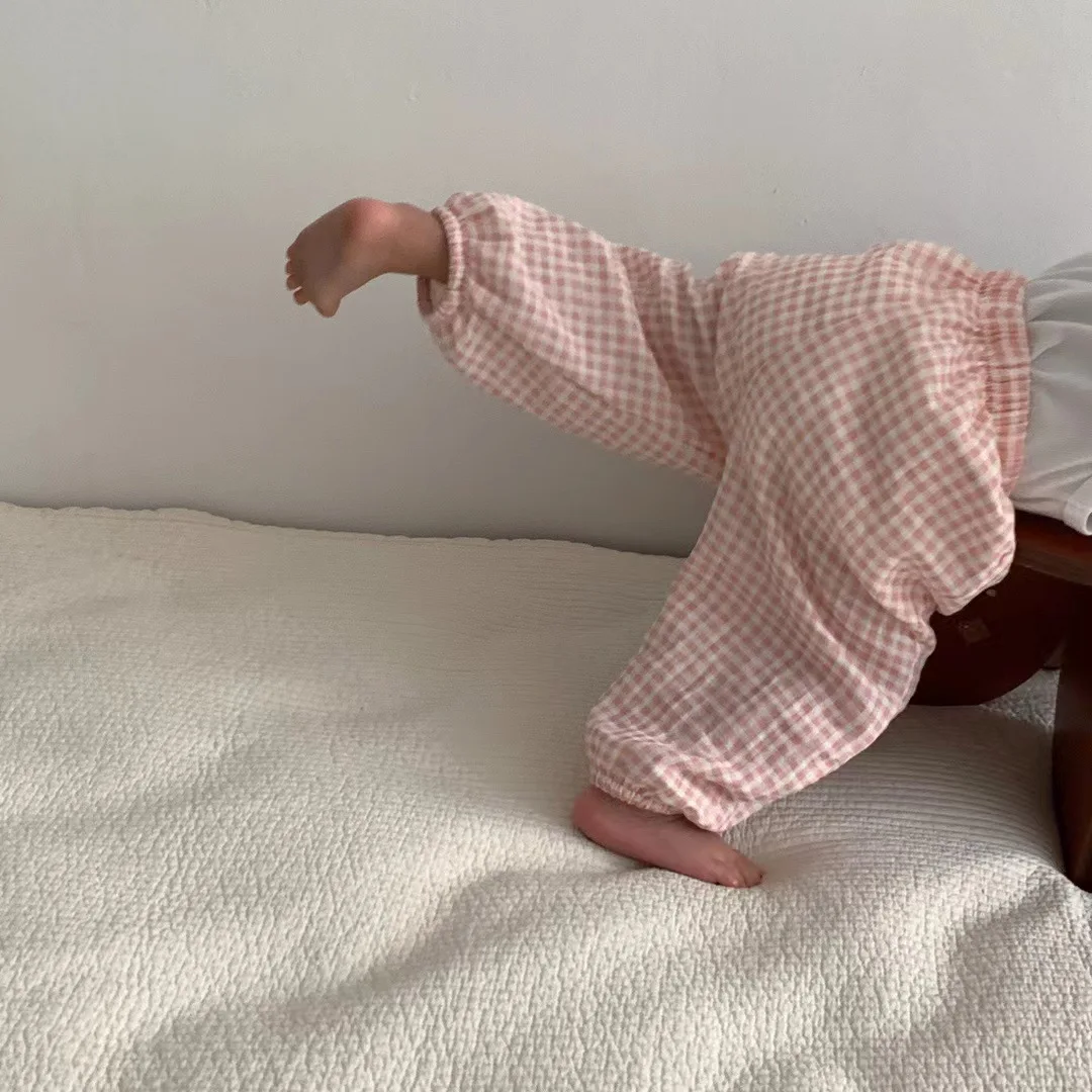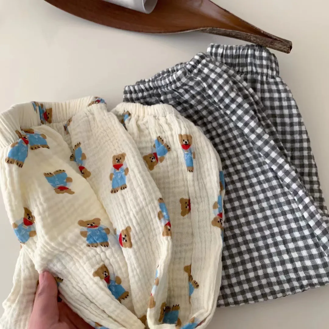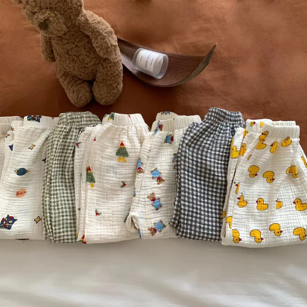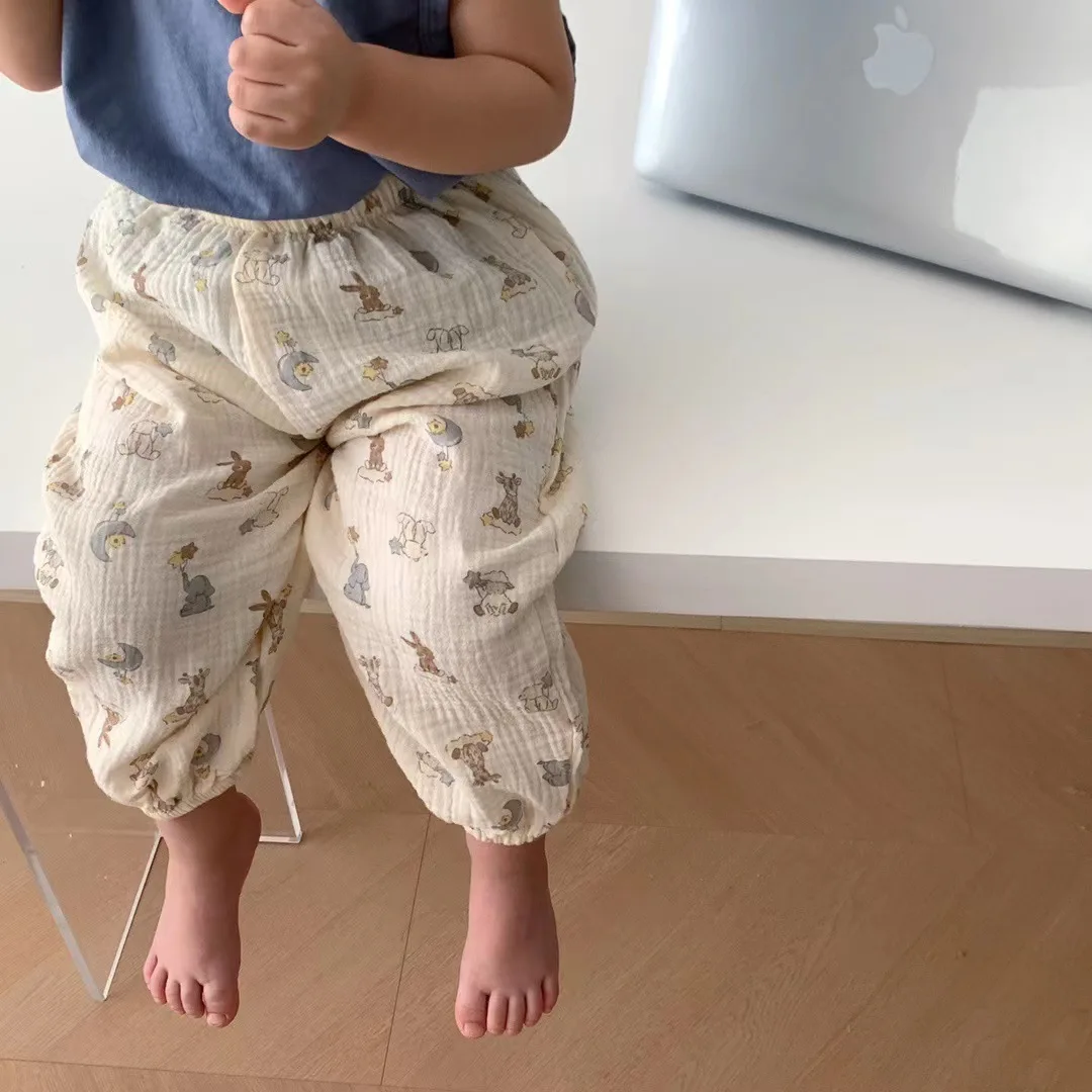 Pantalones de muselina de algodón para bebés, pantalones antimosquitos de gasa de verano para niños y niñas, pantalones holgados con estampado de dibujos animados para bebés