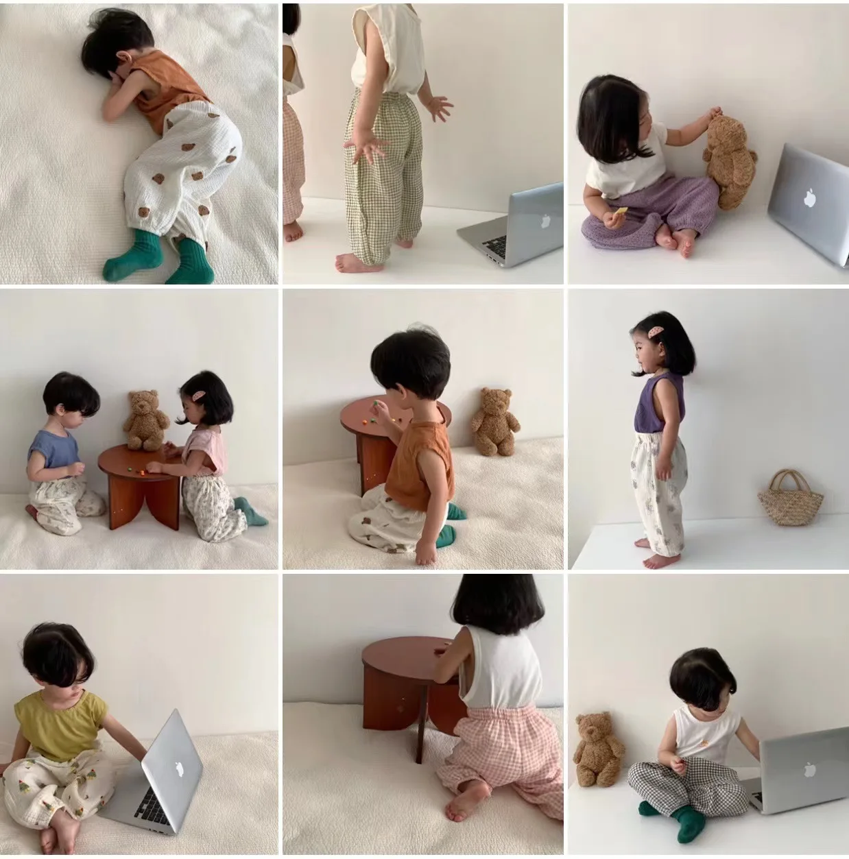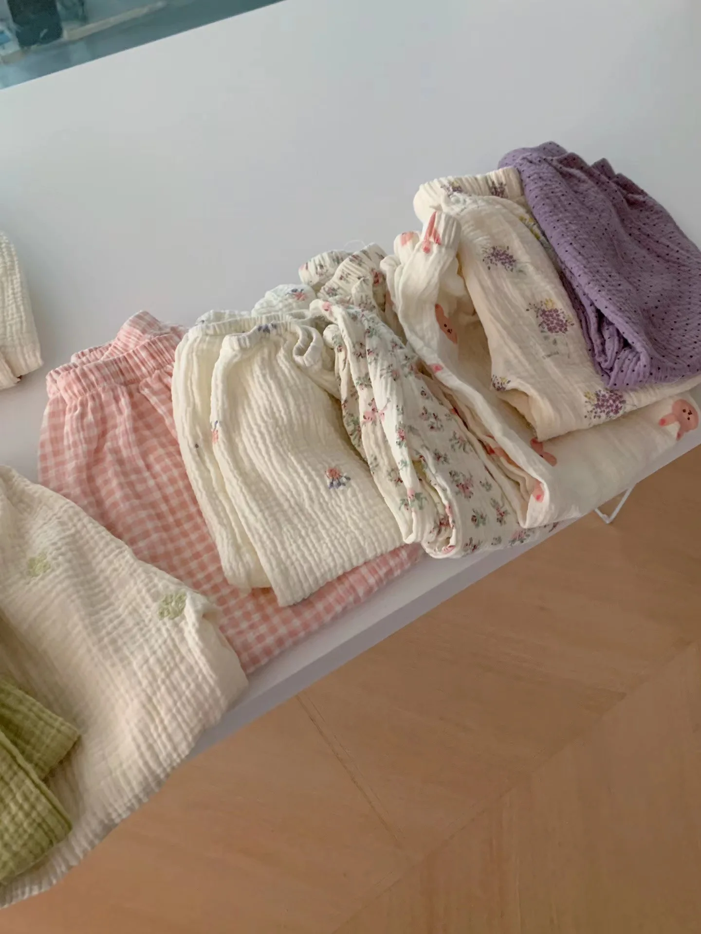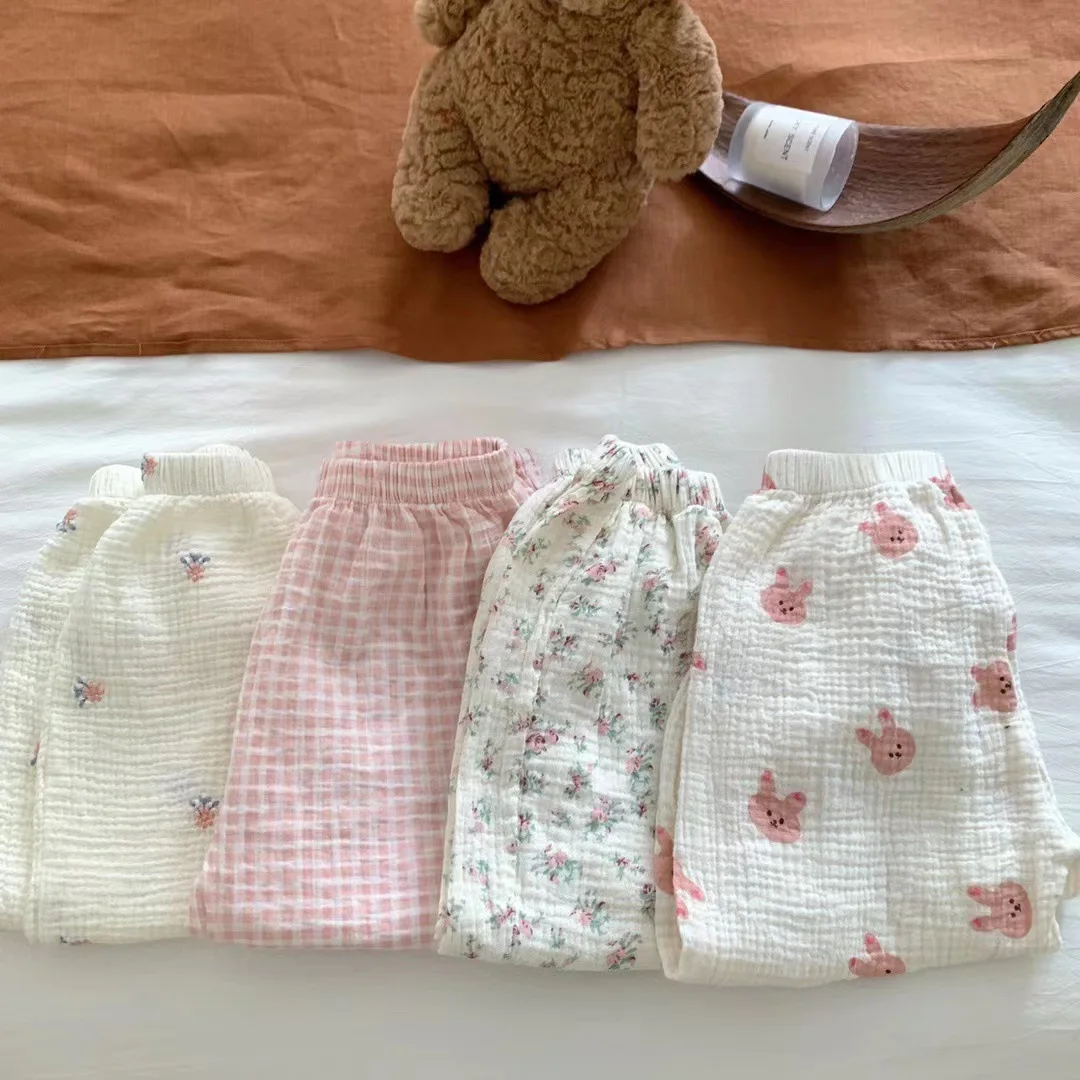 Comprar Pantalones de muselina de algodón para bebé, pantalones antimosquitos de gasa para niño y niña, pantalones holgados con estampado de dibujos animados para bebé