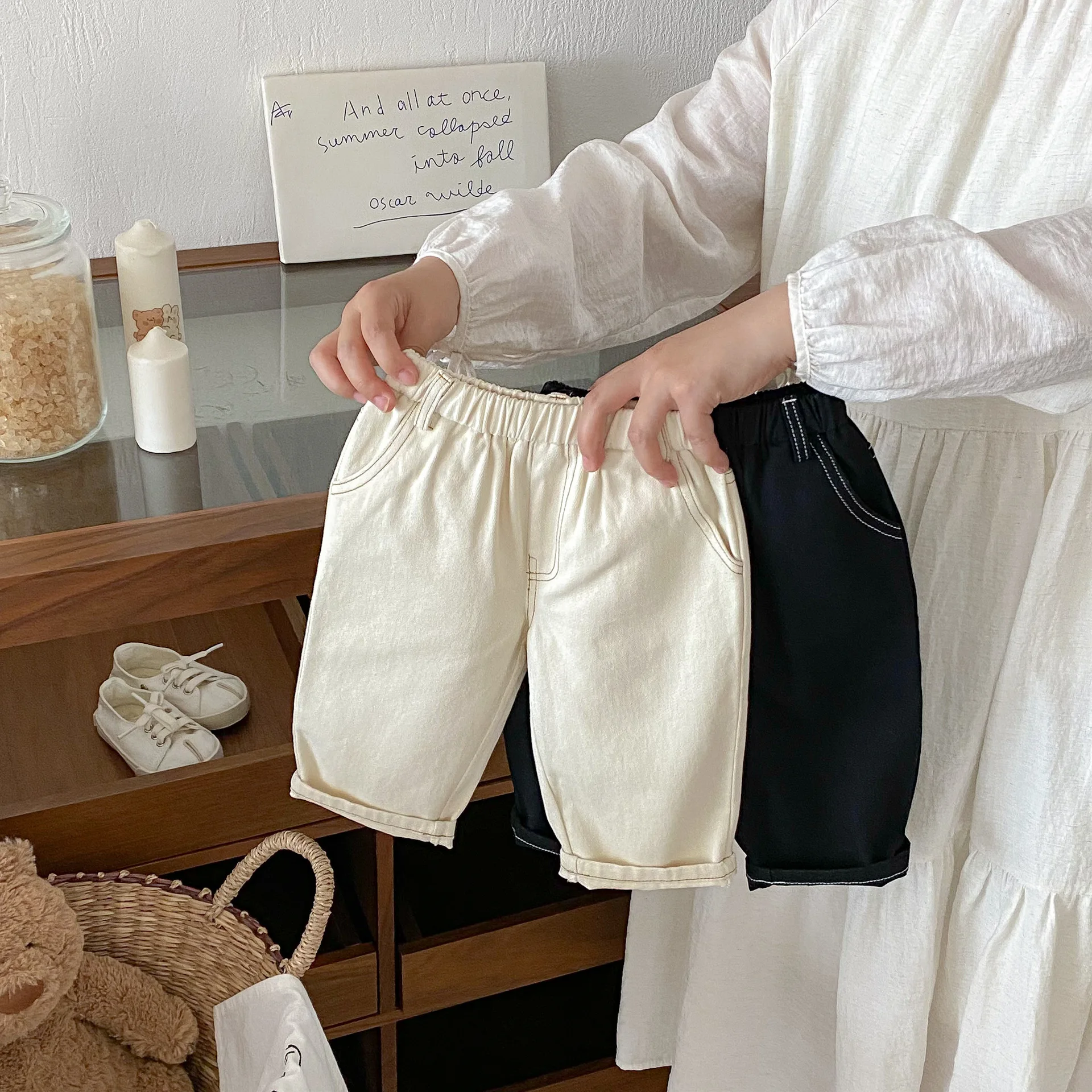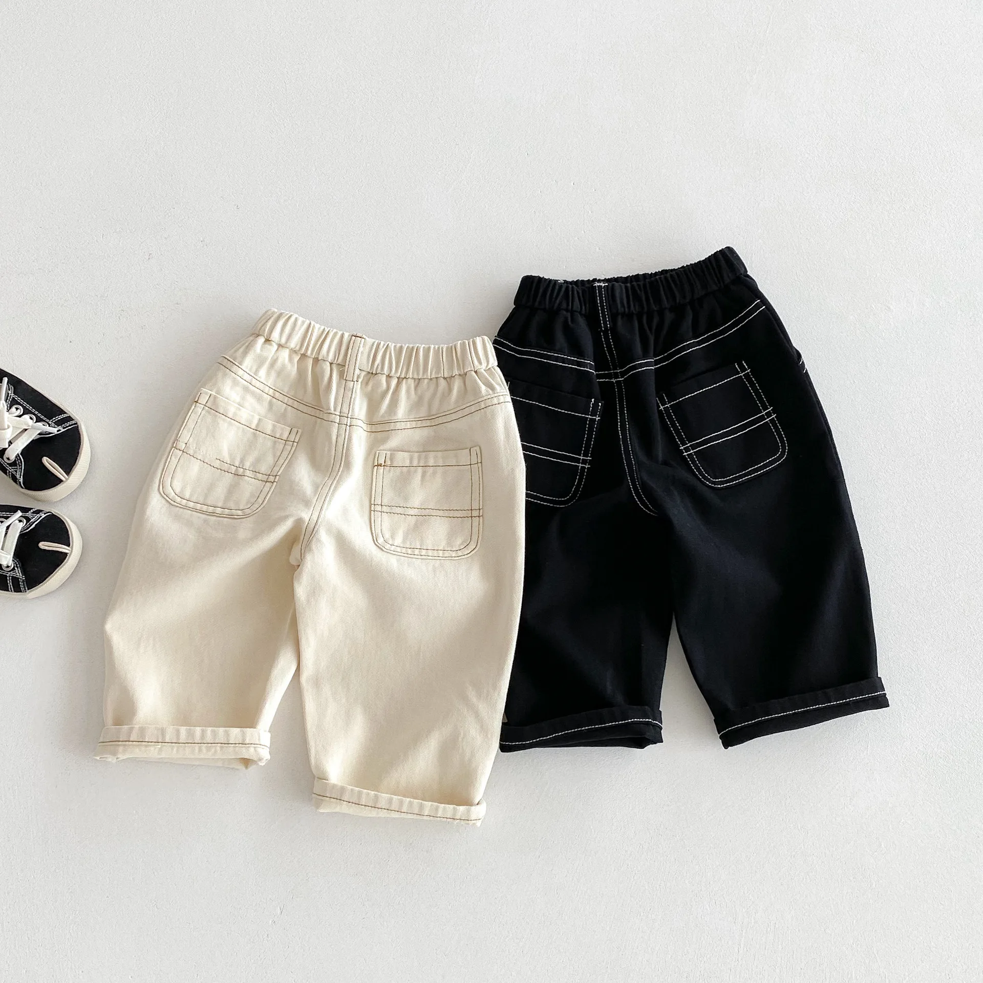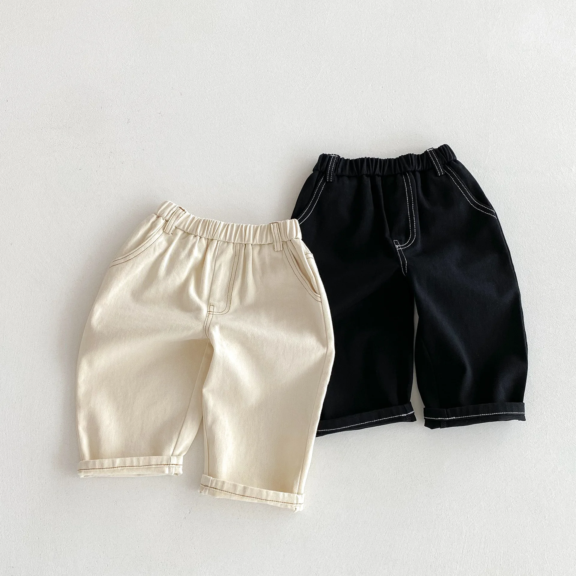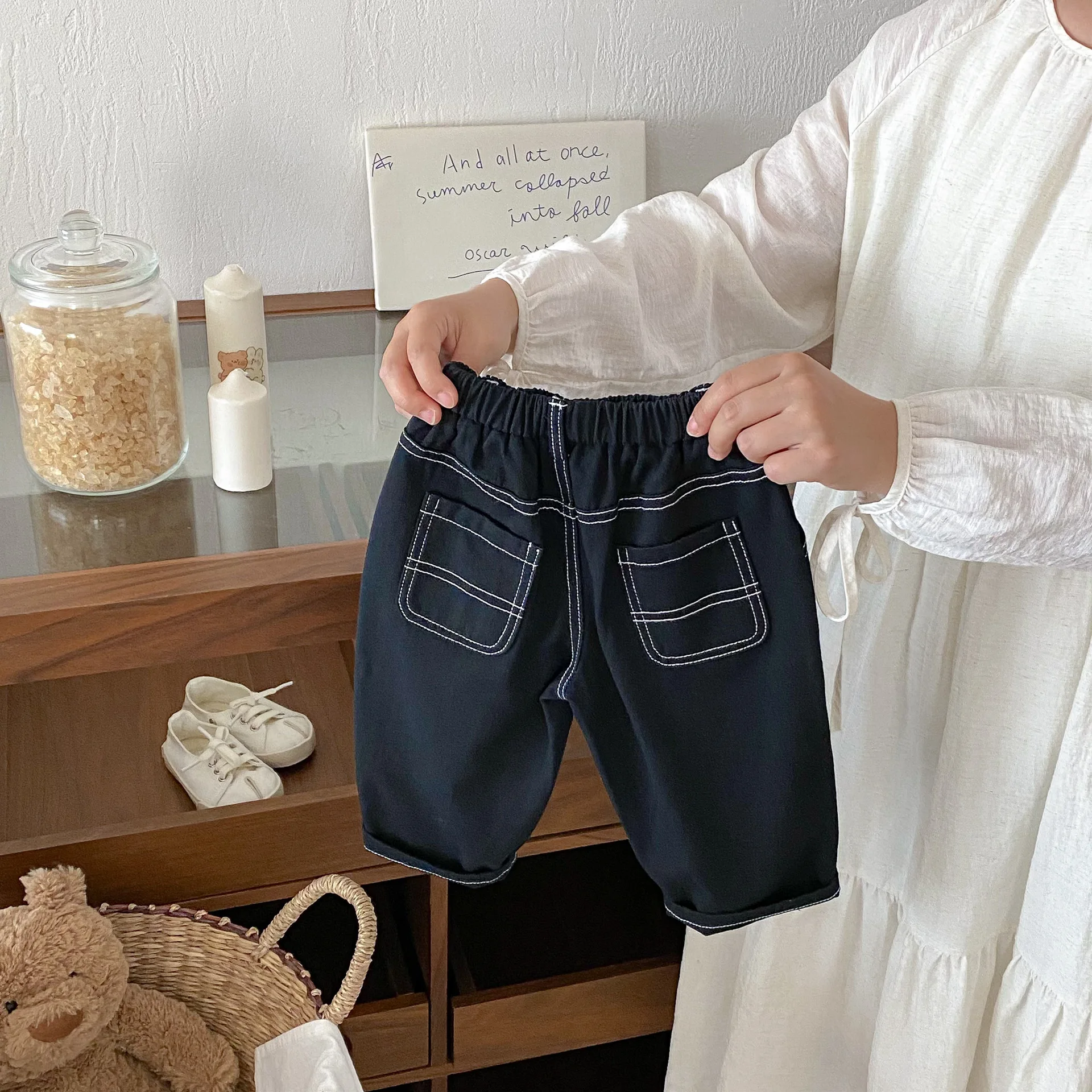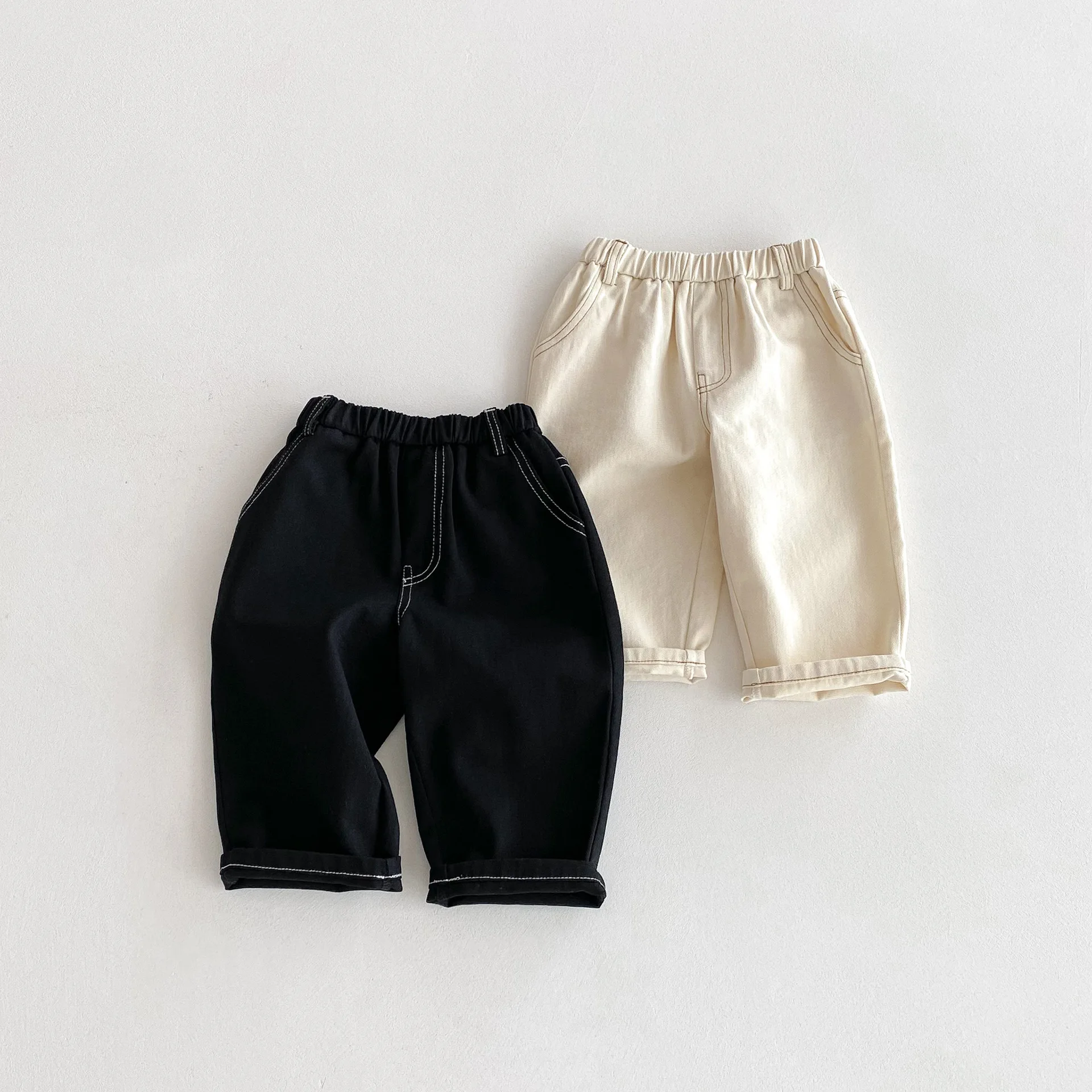 Son pantalones casuales de color sólido de estilo coreano, adecuados tanto para niños como para niñas.El diseño simple pero moderno de color sólido los hace fáciles de combinar con varias blusas, como camisetas, suéteres, etc.Los pantalones se pueden utilizar como jeans para primavera y otoño.Su diseño versátil permite que su hijo luzca a la moda en diferentes ocasiones, desde salidas diarias hasta reuniones familiares.