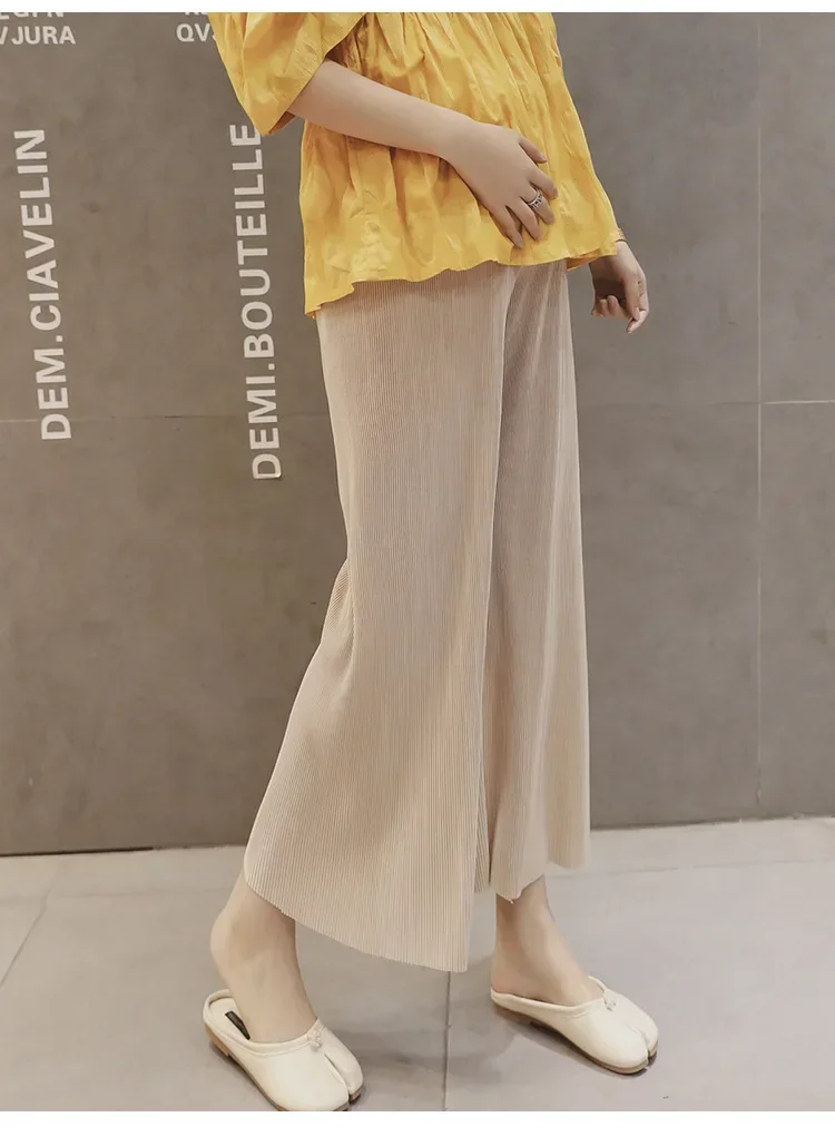 Comprar Pantalones de pierna ancha de seda de hielo, ropa exterior delgada, pantalones plisados sueltos, ropa de maternidad de verano
