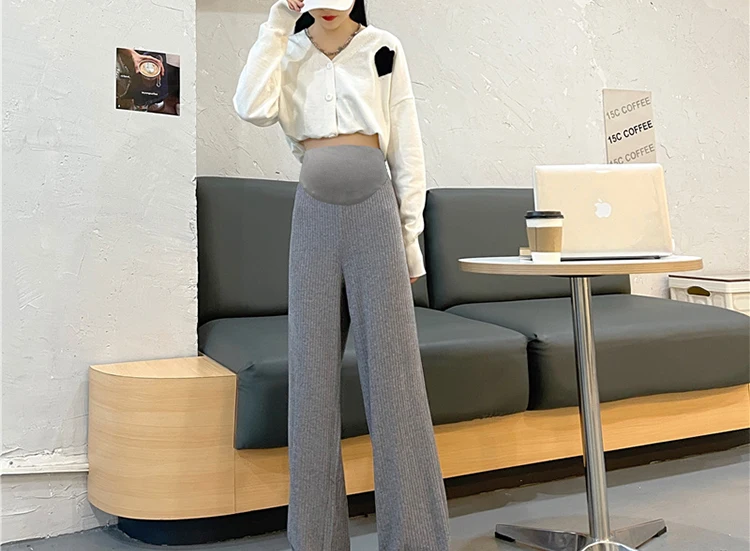 Comprar Pantalones rectos largos de maternidad para mujeres embarazadas, ropa de vientre suelto de pierna ancha, gruesa y cálida, de terciopelo, informal, invierno, 119