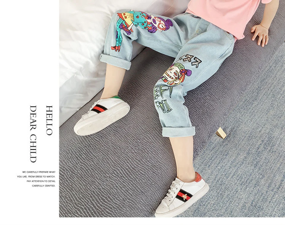 2020 New Arrival Girls' Jeans Cartoon Anime Beauty Hipster Children's Jeans Children's Clothing Teen Girls Jeans Kids 3-13 Years