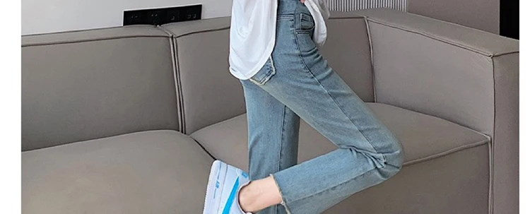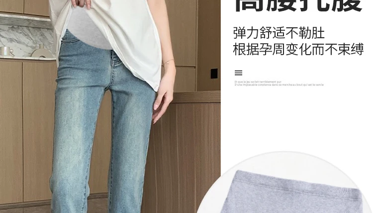 Comprar Pantalones vaqueros elásticos para mujeres embarazadas, Jeans rectos de maternidad, pantalones de vientre recortados, ropa informal, Verano