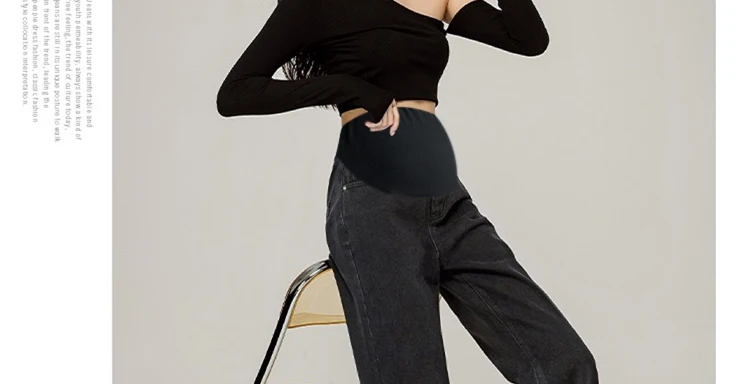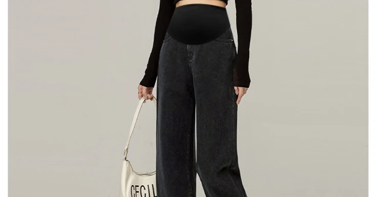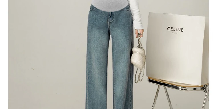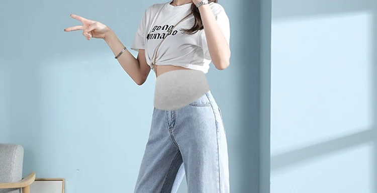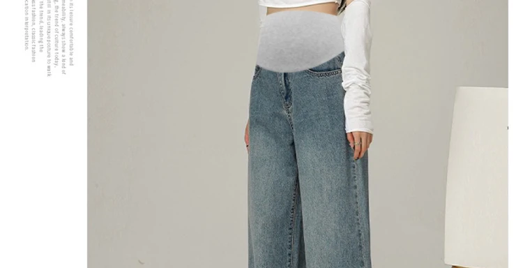 Comprar Pantalones vaqueros finos de piernas anchas para maternidad, cintura alta, hasta el suelo, sueltos, informales, para mujer embarazada, pantalones vaqueros largos para embarazo