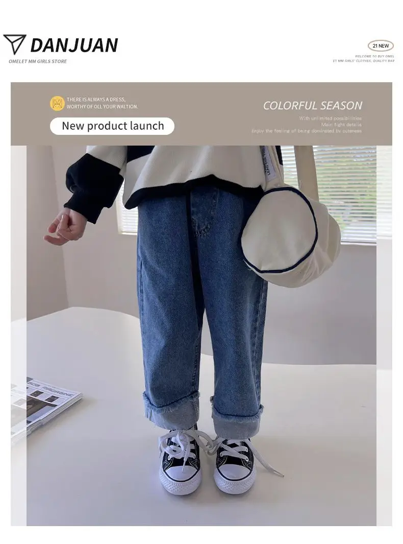 Comprar Pantalones vaqueros holgados de pierna ancha para niñas, Jeans rectos informales de estilo coreano, versátiles, a la moda