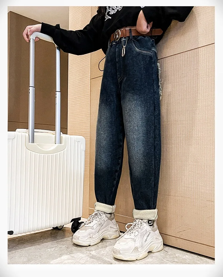 Comprar Pantalones vaqueros holgados de terciopelo para niñas medianas y grandes, pantalones de rábano versátiles, nuevos, Otoño e Invierno