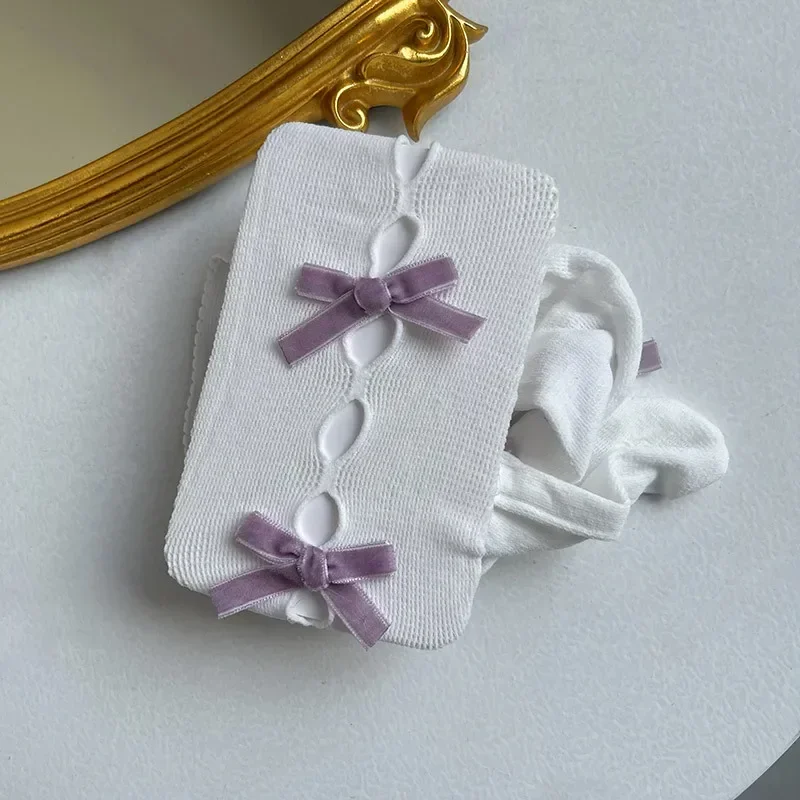 Comprar Pantimedias ajustadas de estilo Retro coreano para niños y niñas, medias de malla fina transpirable con lazo de encaje Lolita, calcetines de decoración de verano
