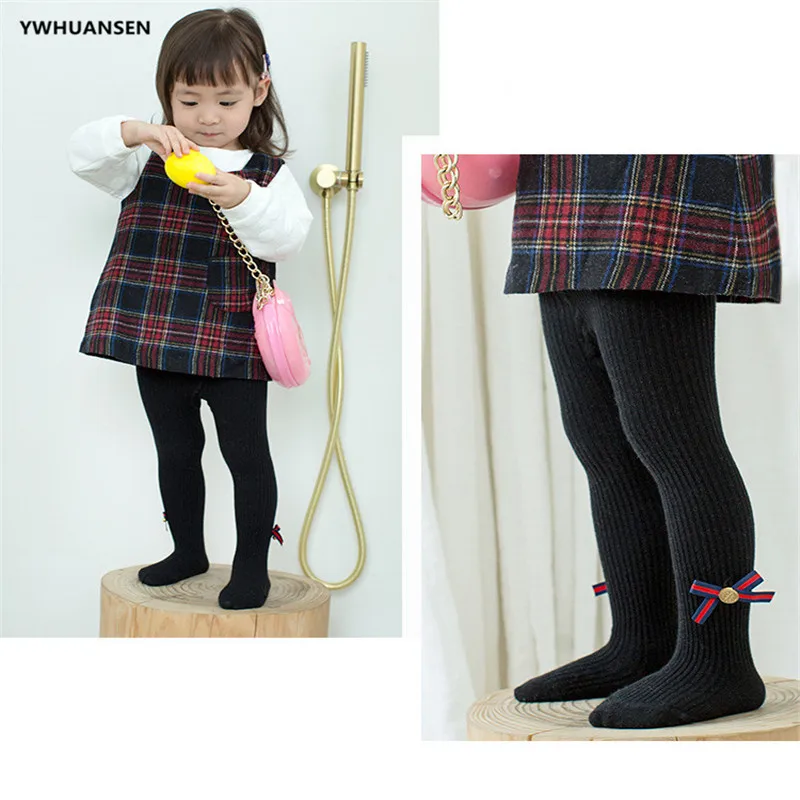 Comprar Pantimedias de algodón para niños y niñas de 0 a 8 años, medias de punto con lazo, Primavera, Otoño e Invierno
