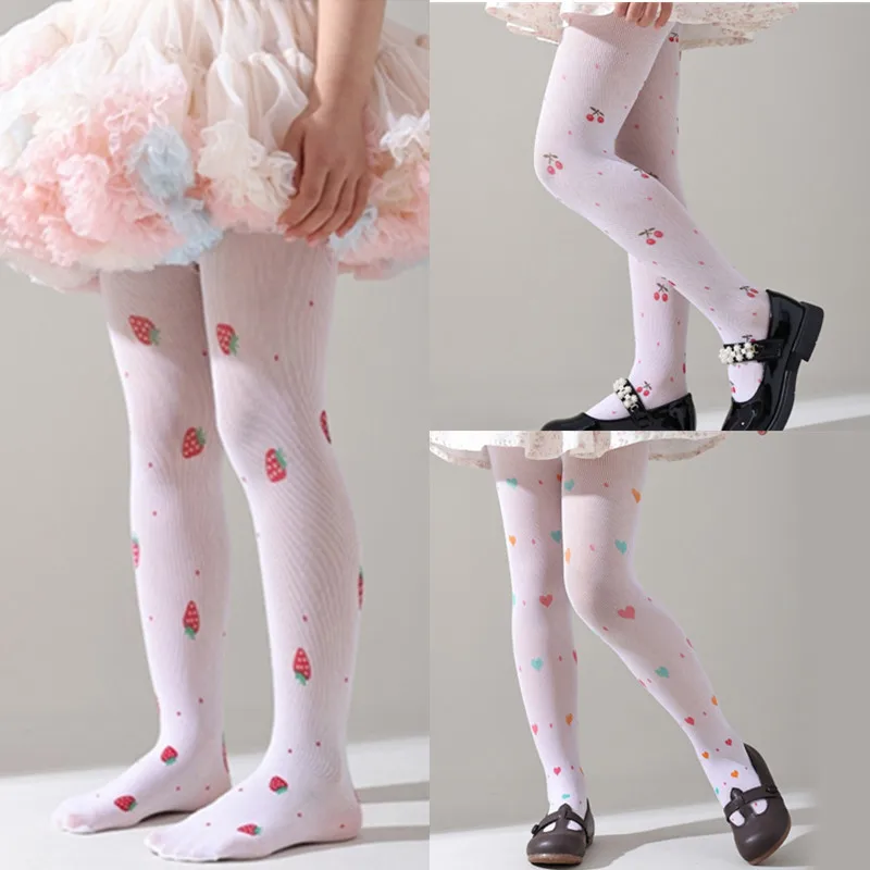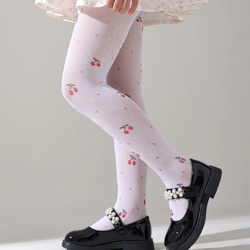 Comprar Pantimedias con Estampado de cereza para niñas, medias largas ajustadas de malla fina, calcetines de princesa para niñas de 3 a 12 años, novedad de verano