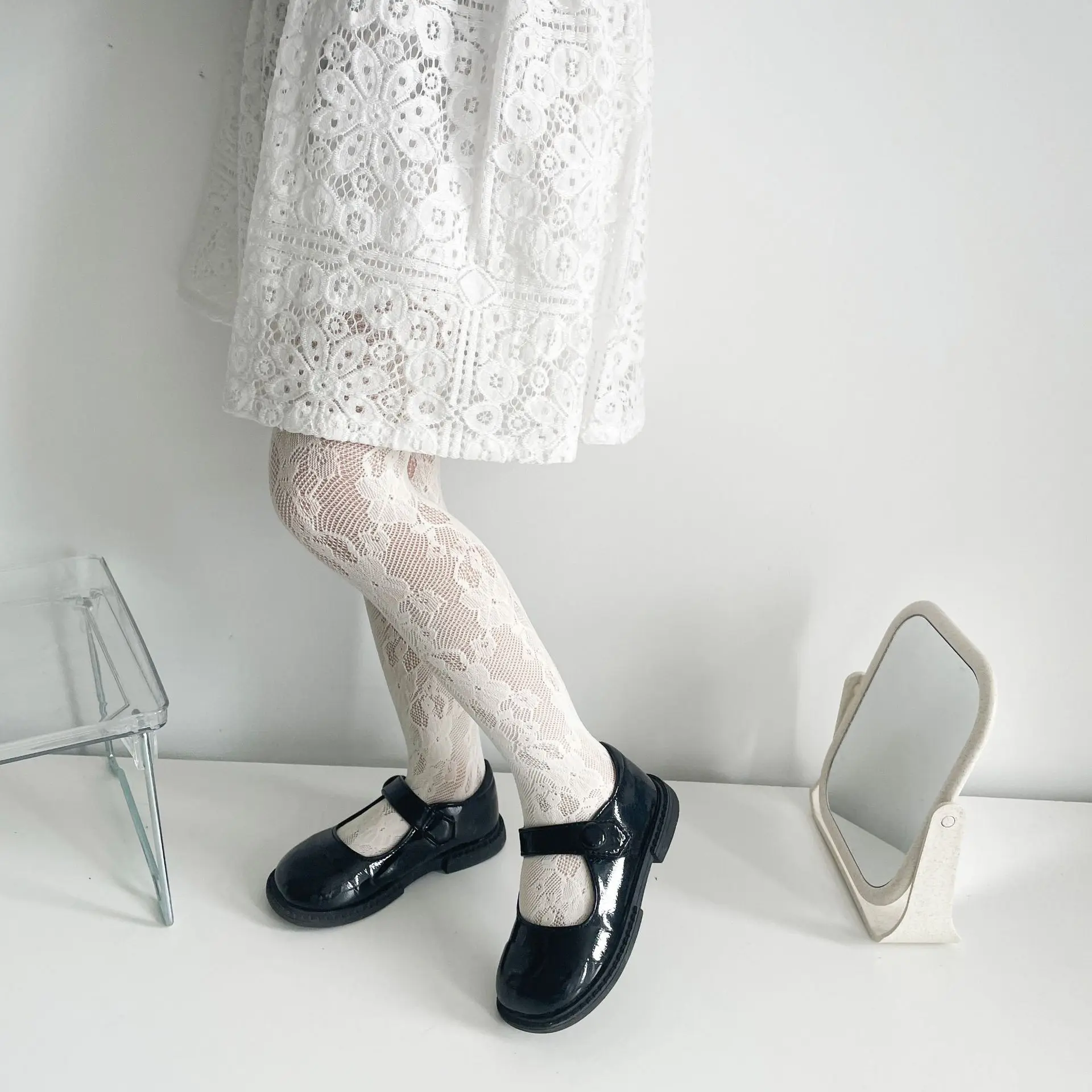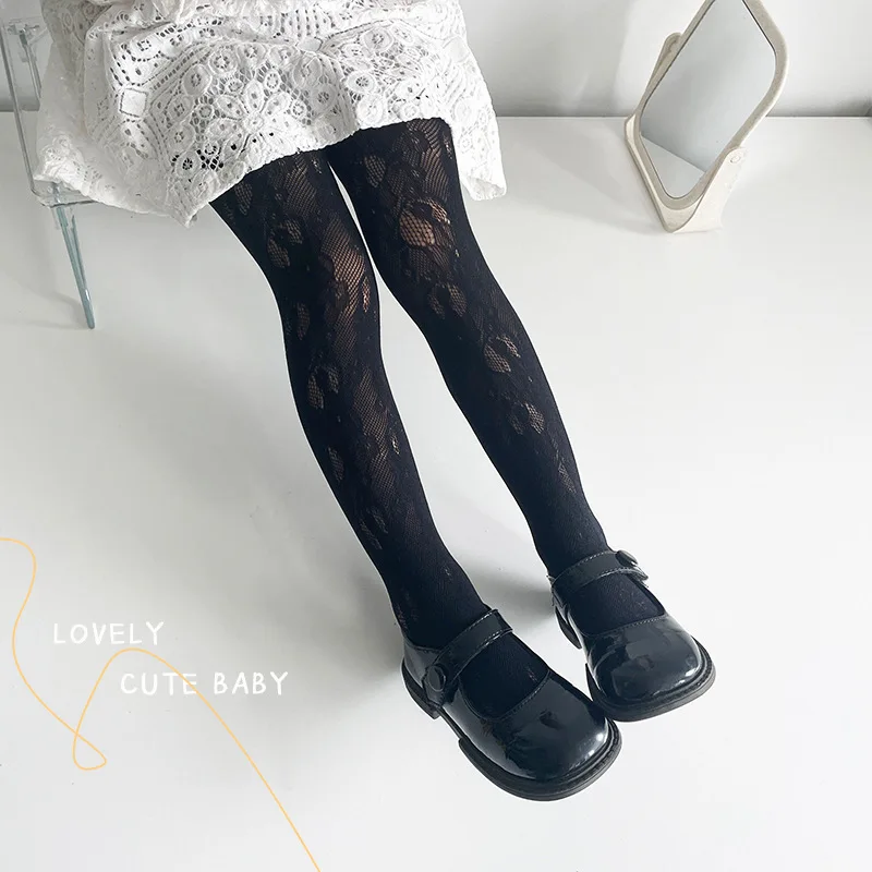 Pantimedias de malla transpirable huecas finas de verano, mallas de princesa de encaje blanco y negro, calcetines para niños y niñas, accesorios para bebés
