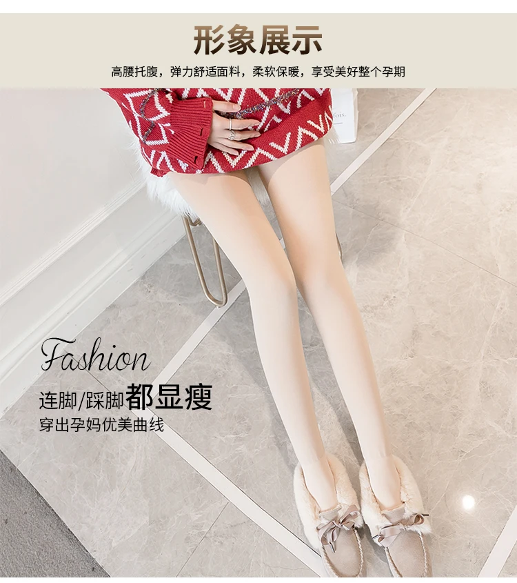 Comprar Pantimedias de terciopelo para mujeres embarazadas, pantimedias 320D delgadas de maternidad, ropa de cintura elástica para el vientre, moda de otoño, 8090