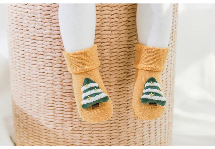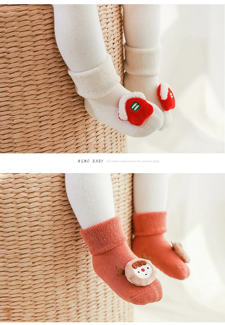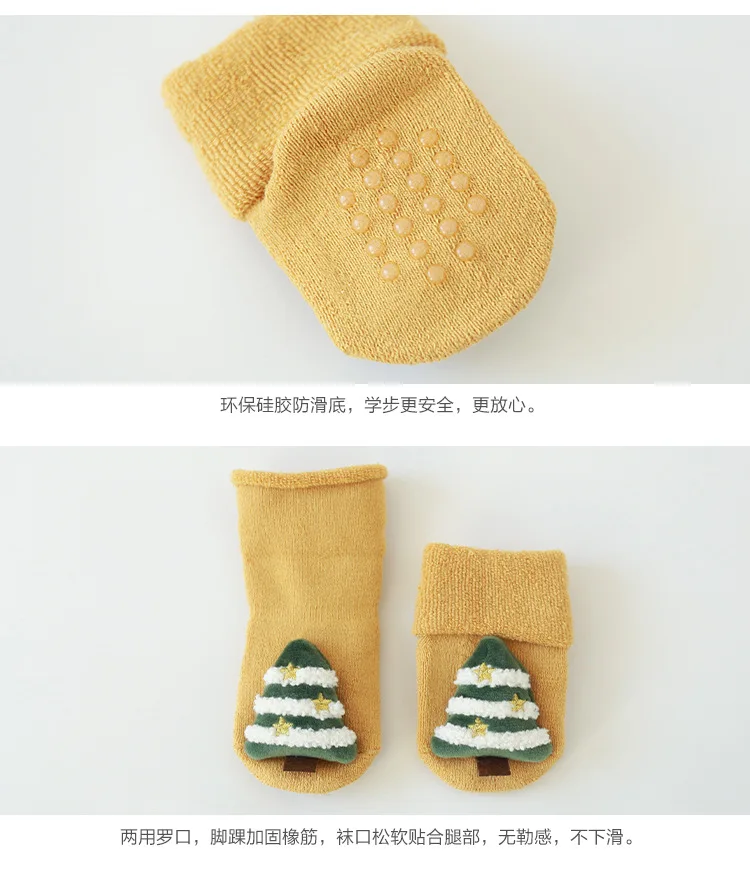 Pantuflas antideslizantes gruesas de felpa para bebé, calcetín largo hasta el suelo, Feliz Navidad, muñeco de dibujos animados, medias para recién nacido, invierno, 2022