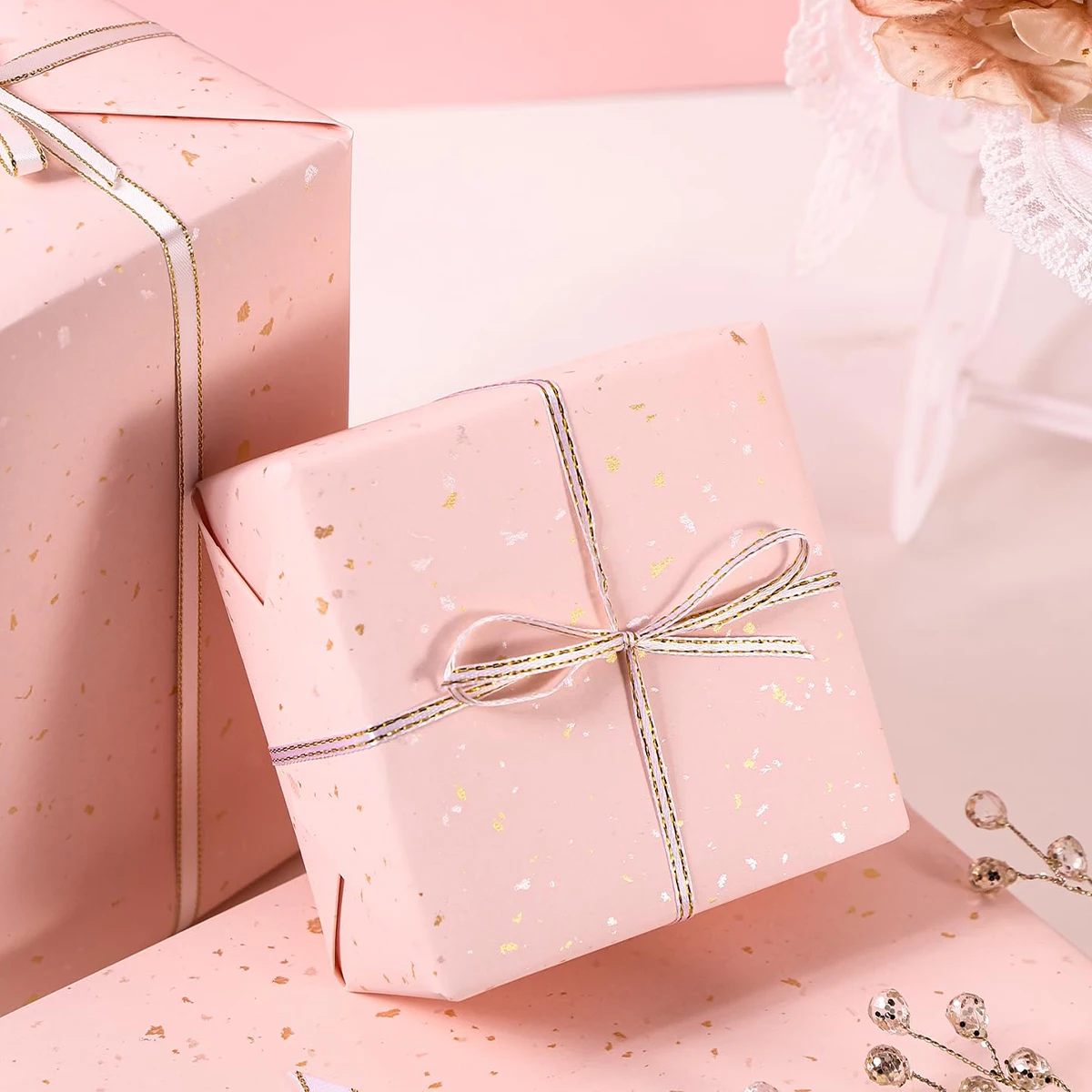 Papel de envolver con purpurina fina y plata dorada, decoración para fiestas de primer cumpleaños, regalos para niños, artículos de papel para envolver para bebés