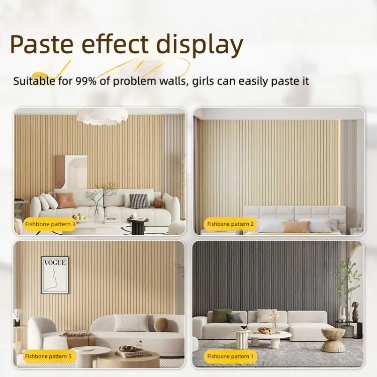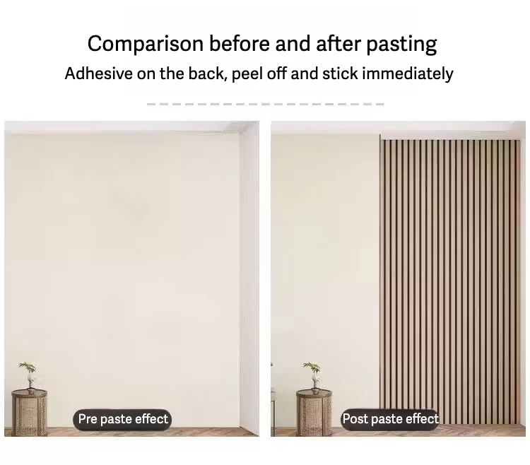 La parte posterior tiene una fuerte capa autoadhesiva, que se puede fijar fácilmente arrancando el papel posterior. No es necesario mezclar pegamento, no necesita herramientas profesionales, una persona puede operar, el proceso de instalación es limpio y simple, lo que reduce en gran medida el umbral y el costo de renovación.