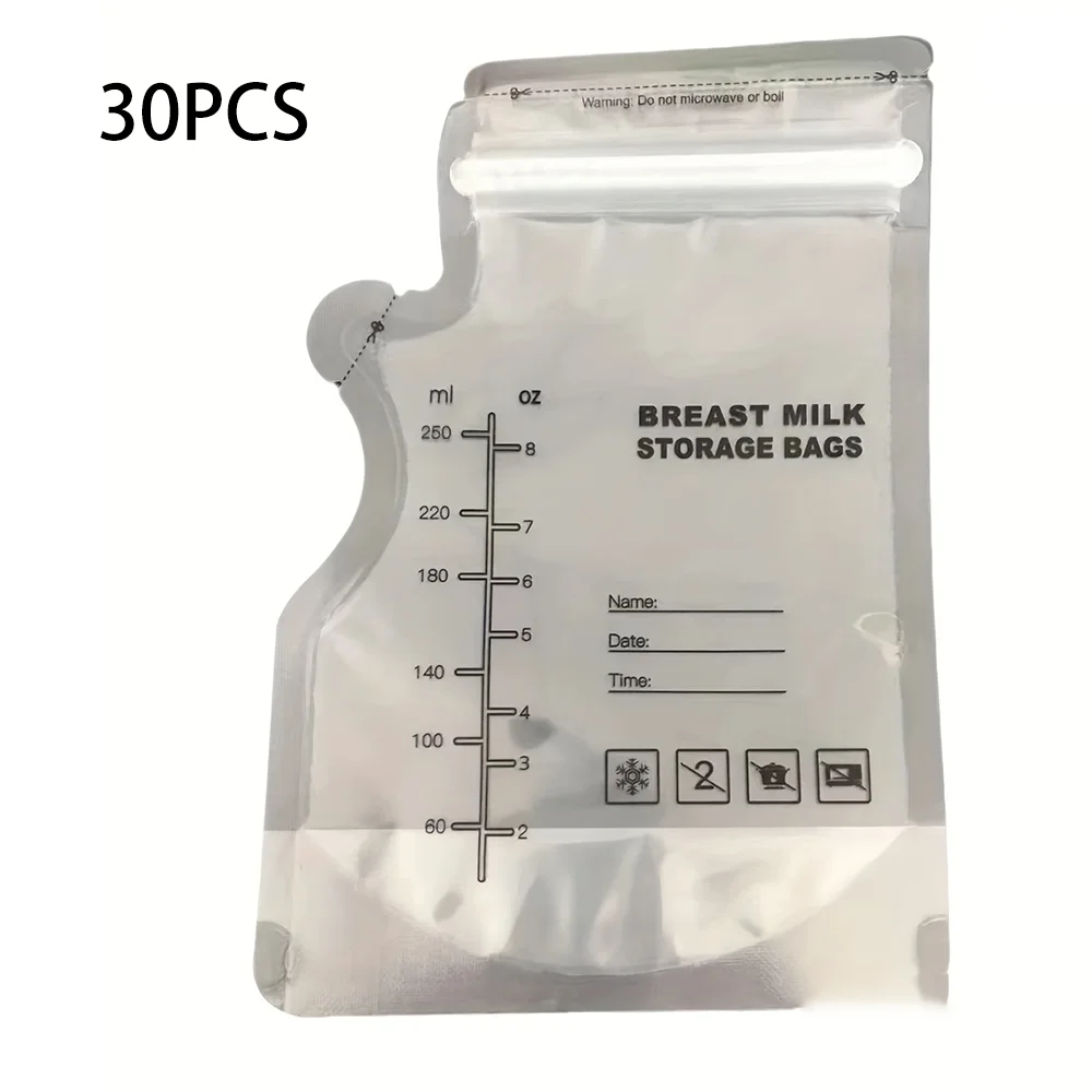 Paquete de 30/60 bolsas de almacenamiento de leche sin BPA de 250ml bolsas seguras para congelador de leche materna y alimentos para bebés para una fácil alimentación