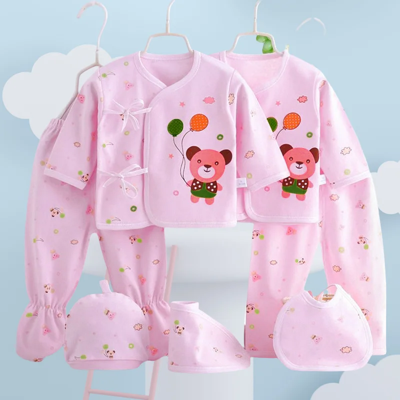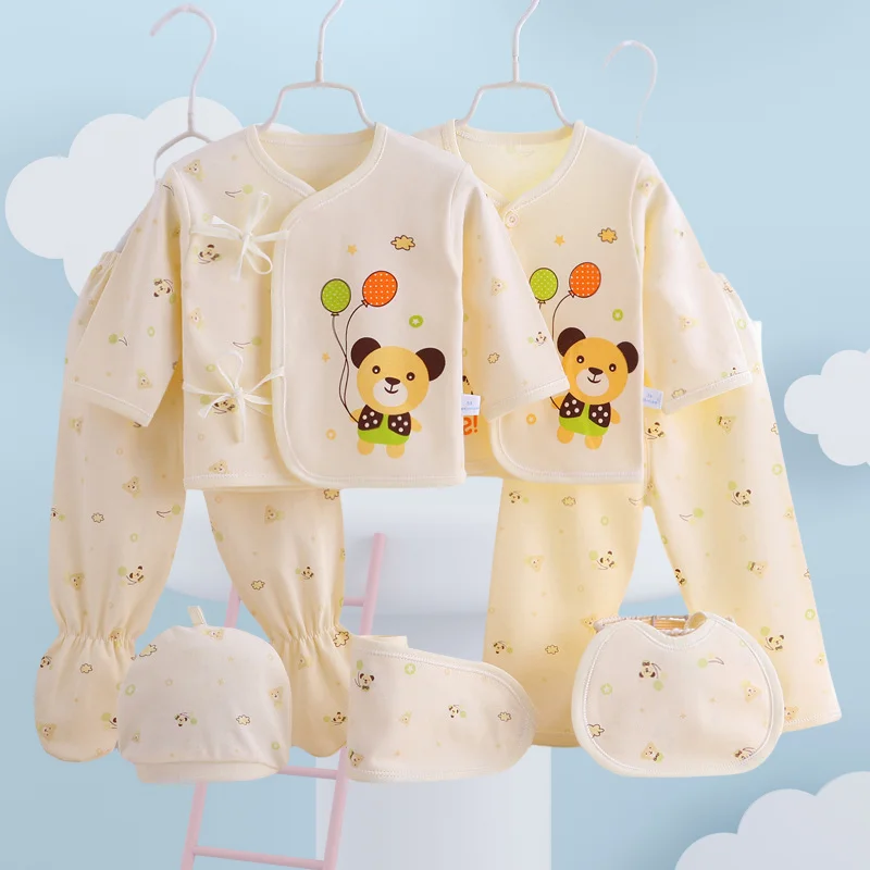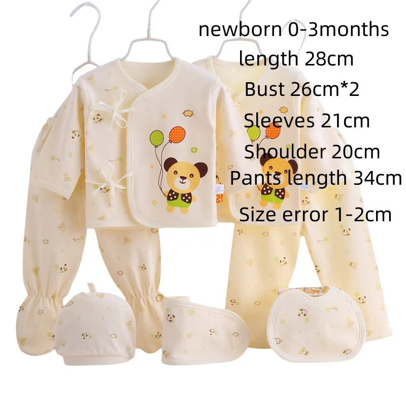 Comprar Paquete de 7 piezas de ropa estampada para recién nacidos, camisa, pantalones, baberos, sombrero para bebés, niñas y niños de 0 a 3 meses