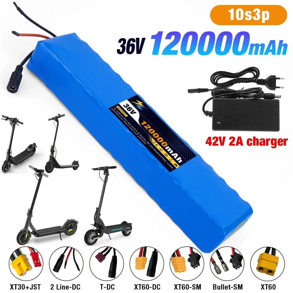 10S3P 36V 120Ah 18650 Paquete de batería de litio recargable 1000W Potencia Bicicleta modificada Scooter eléctrico Vehículo con BMS