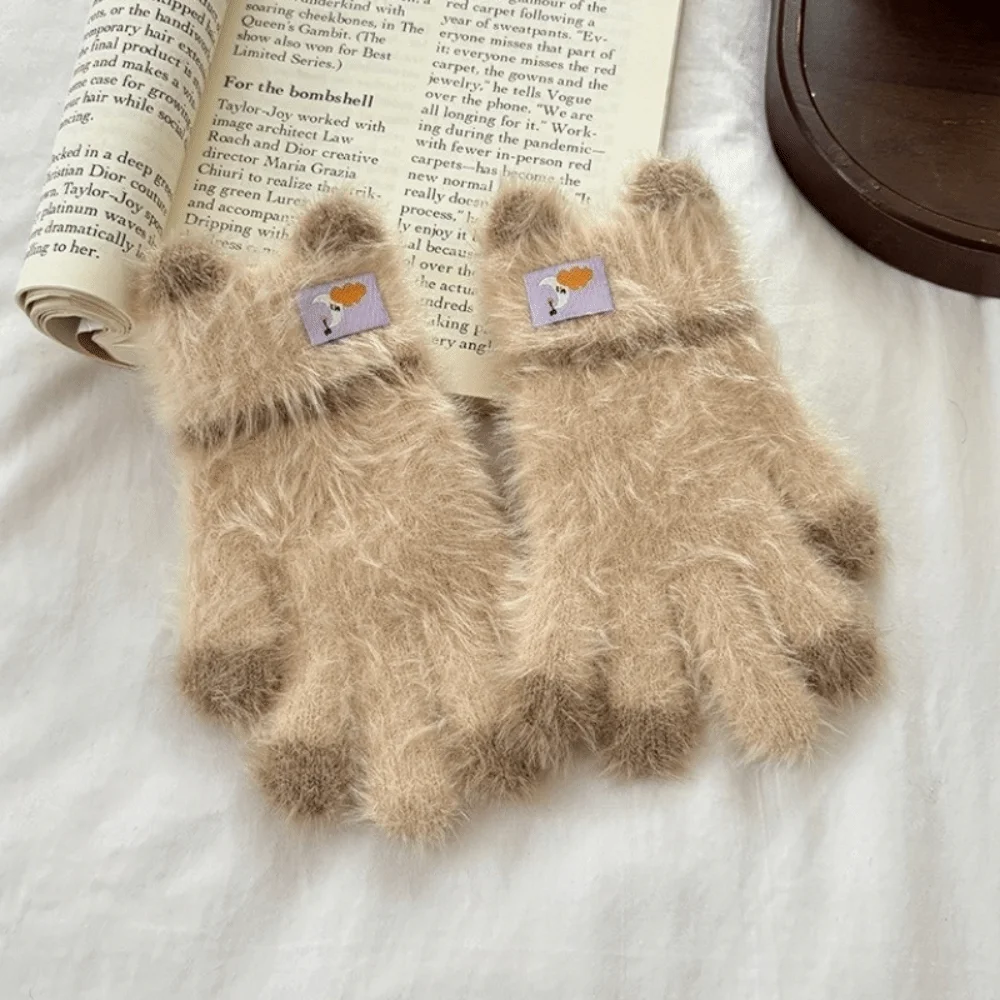 --Premium Mink-Like Plush Material: Crafted with soft mink-like plush and long-hair fabric, the gloves deliver a cozy skin-friendly touch. They are perfect for kids' delicate hands and avoid irritation even during long hours of wear. --All-Round Winter Warmth & Frostbite Protection: The thick plush lining effectively locks in body heat and forms a thermal barrier against cold winds and low temperatures. It keeps little hands warm and protected from frostbite, ideal for harsh winter days. --Versatile Outdoor Performance: Designed for winter outdoor activities, the gloves are suitable for cycling, playing in the snow and building snowmen. They provide reliable warmth and protection while kids enjoy outdoor fun. --Practical for Daily & Learning Scenarios: With a flexible design that doesn't restrict finger movement, the gloves are great for outdoor play and ideal for kindergarten kids to write or do small handcrafts. They balance warmth and usability well. --Kid-Friendly Size & Texture: Tailored to kindergarten kids' hand sizes, the gloves have a lightweight texture. It ensures kids won't feel bulky and makes the gloves easy to put on and take off independently. Specifications: Material: Knitted Usage category: Clothing gloves Applicable gender: neutral/both male and female Processing method: Jacquard Function: Keep warm Pattern: Cartoon Style: Finger gloves Color: White, Lake Blue, Purple, Pink, Dark Grey, Khaki Size:14*9cm(5.51*3.54in) Package Included: A pair of warm gloves Note: 1. Due to the light and monitors effect, colors may have lightly difference. 2. Please allow slightly size errors due to manual measurement. Thank you for your understand!