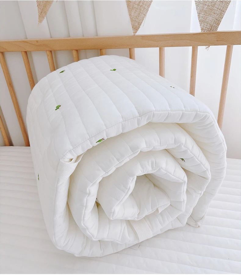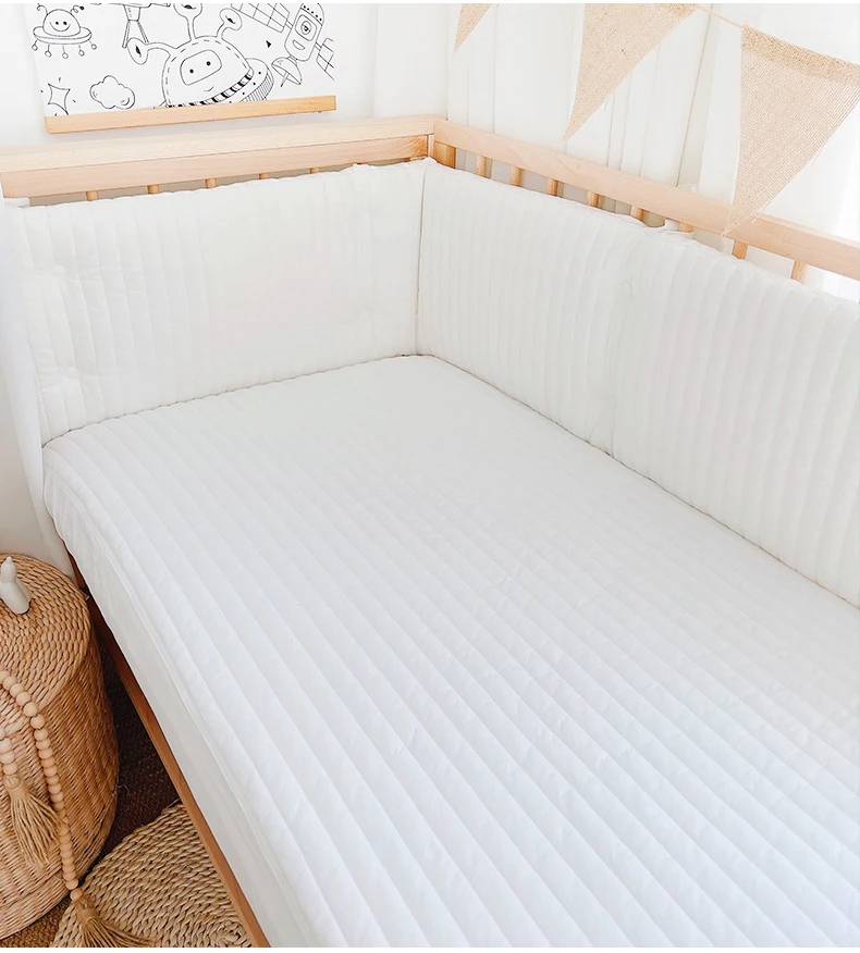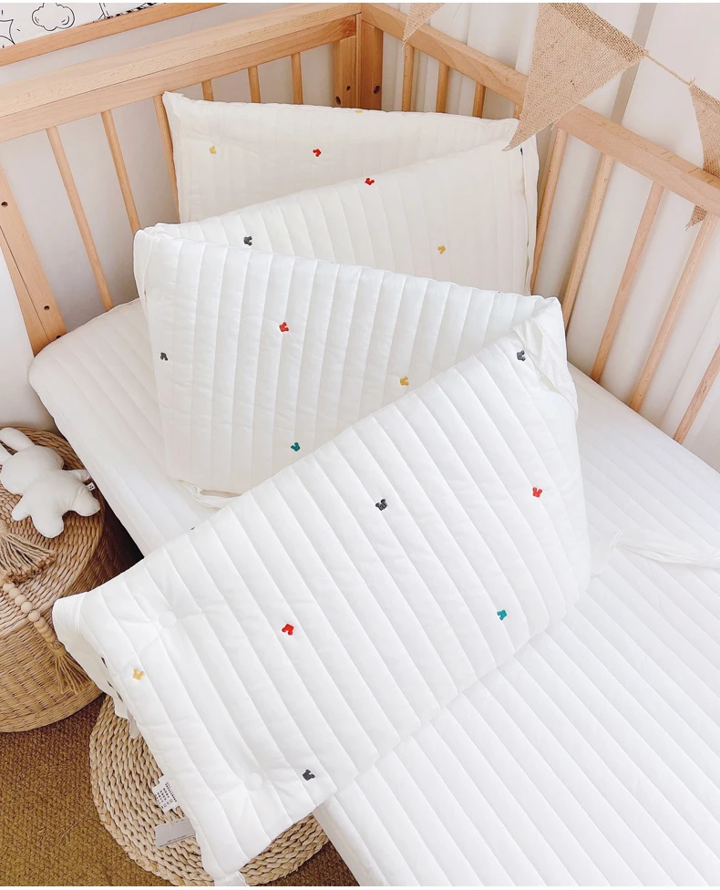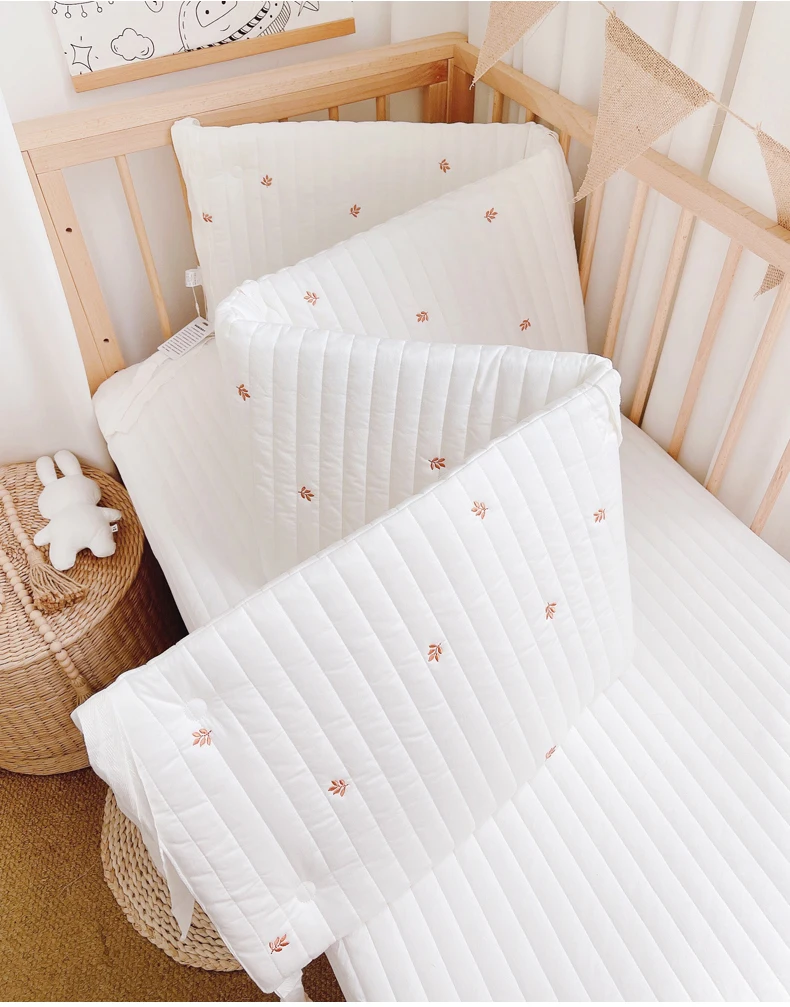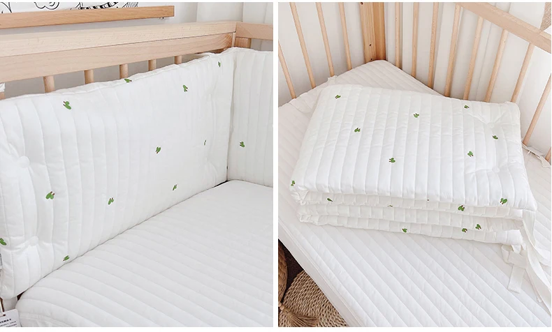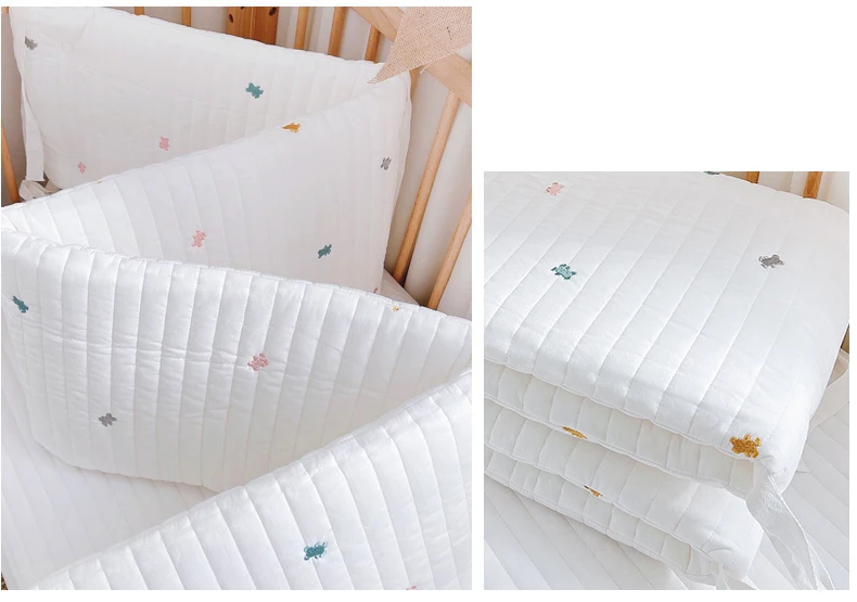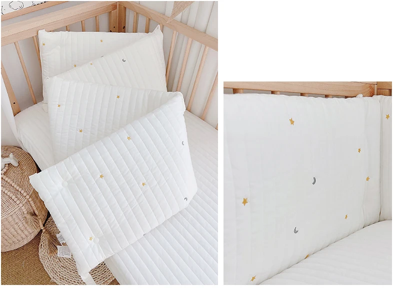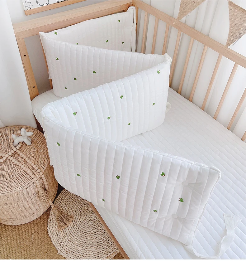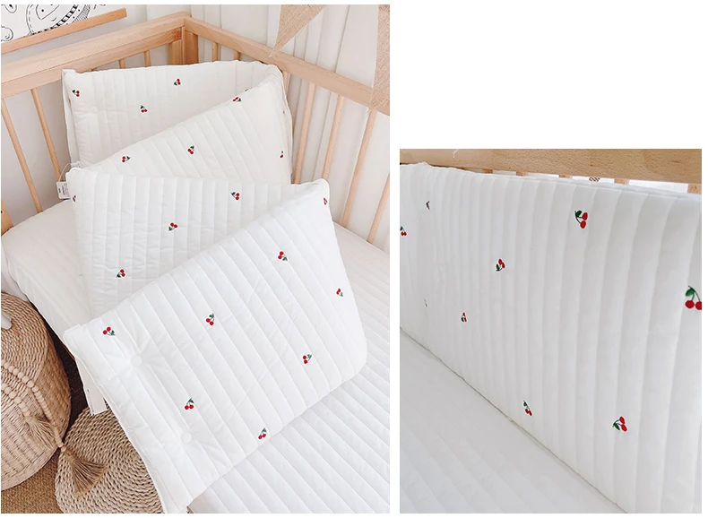 Cuna de bebé, parachoques acolchado de algodón, estrella de cereza bordada, Protector de valla para cuna recién nacido, parachoques de cama para niños, almohada de 200x28CM