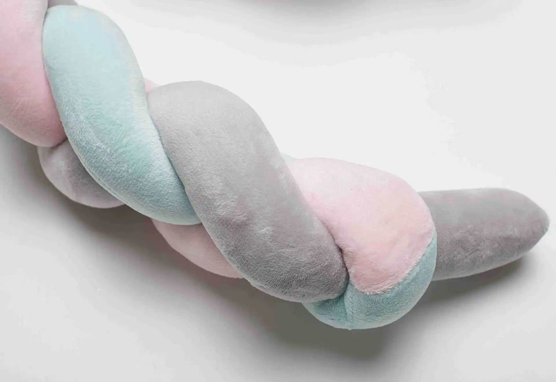Comprar Parachoques de cama de bebé hecho a mano, tejido trenzado anudado, Protector de cuna de felpa, nudo infantil, almohada, decoración de habitación de bebé, 3M