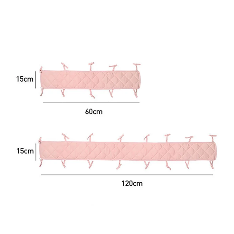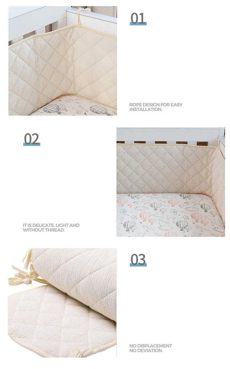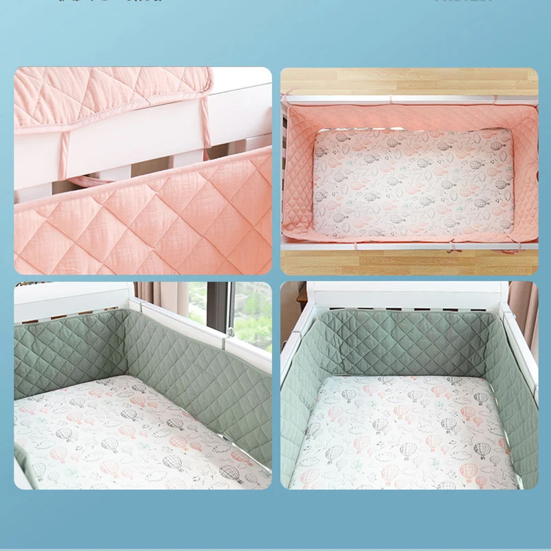 Fácil de arreglar: coloque una cuerda a través del orificio y otra a un lado.Haga un doble nudo entre la funda para asegurarse de que no se caigan fácilmente. Solo envolturas protectoras para cuna, otros accesorios de demostración en la imagen no están incluidos.