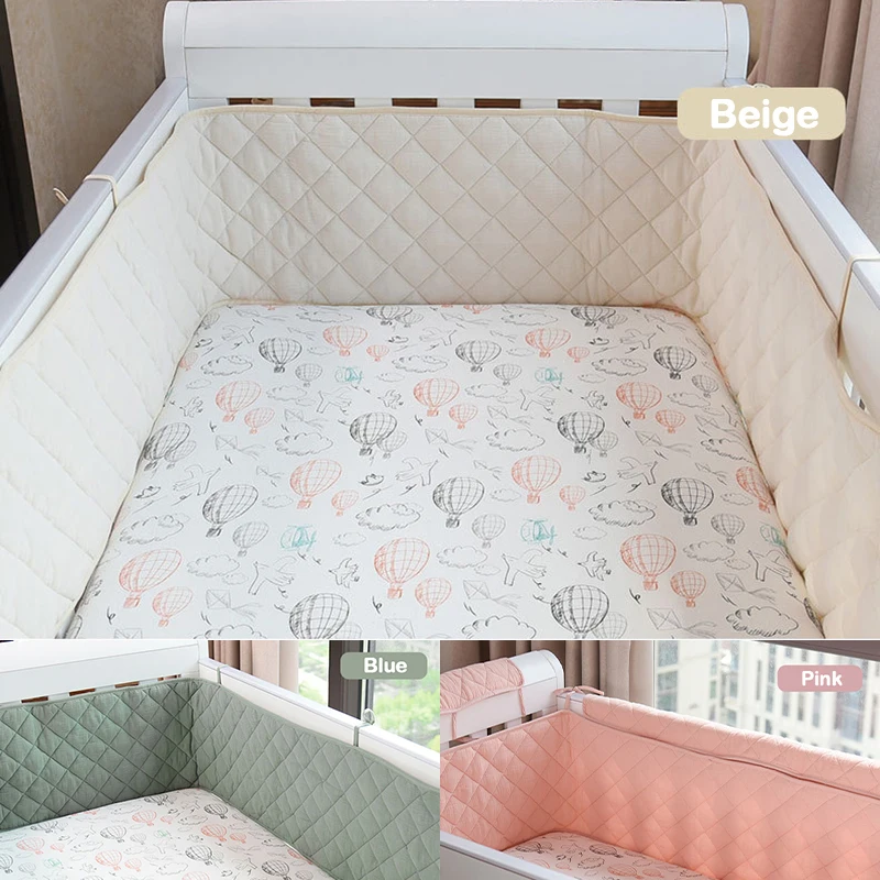 Fácil de arreglar: coloque una cuerda a través del orificio y otra a un lado.Haga un doble nudo entre la funda para asegurarse de que no se caigan fácilmente. Solo envolturas protectoras para cuna, otros accesorios de demostración en la imagen no están incluidos.