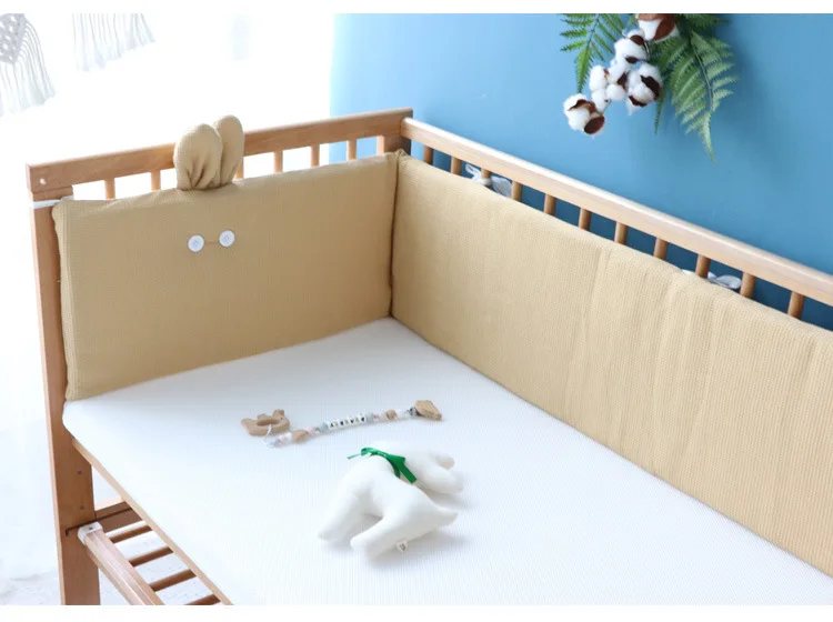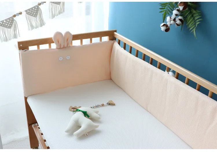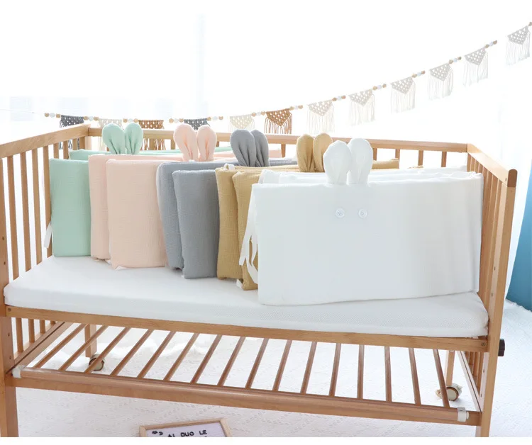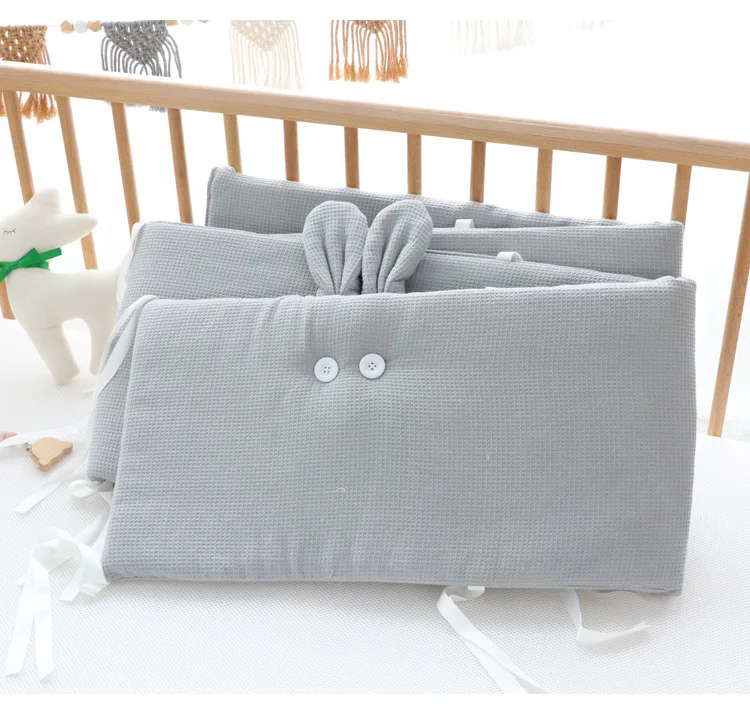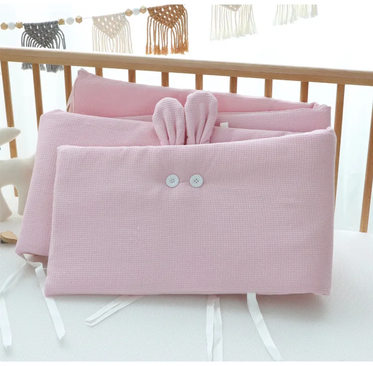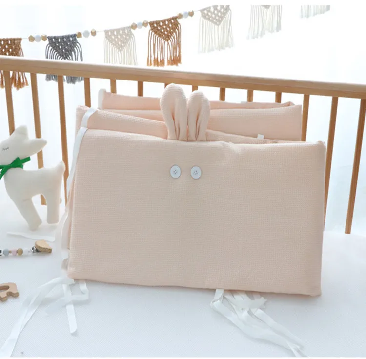 Parachoques de cuna para bebé, gofre de algodón con Orejas de conejo, cojín de protección para recién nacido, almohadas para dormir, parachoques, valla para cuna, ropa de cama