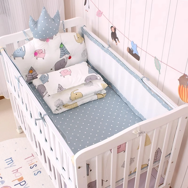 Juego de 5 protectores de cuna con forma de corona para bebé recién nacido, ropa de cama de algodón de malla transpirable para cama de bebé, 5 uds.