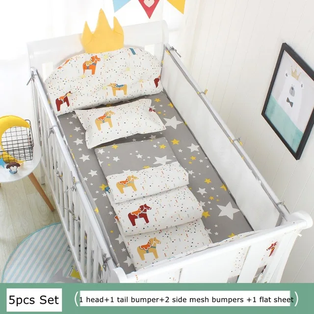 Comprar Parachoques de cuna de Forma de Corona, juego de 5 uds, cuna de bebé recién nacido, entornos, malla transpirable, ropa de cama de algodón