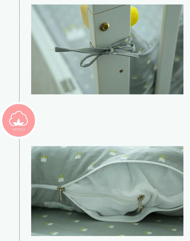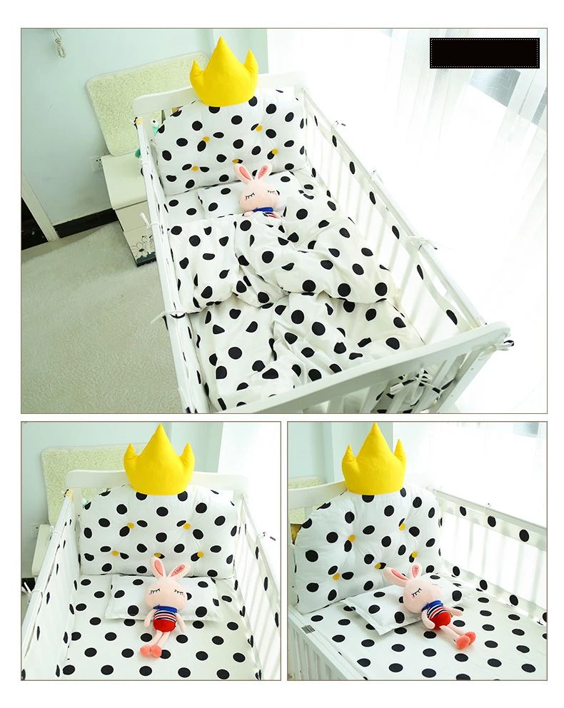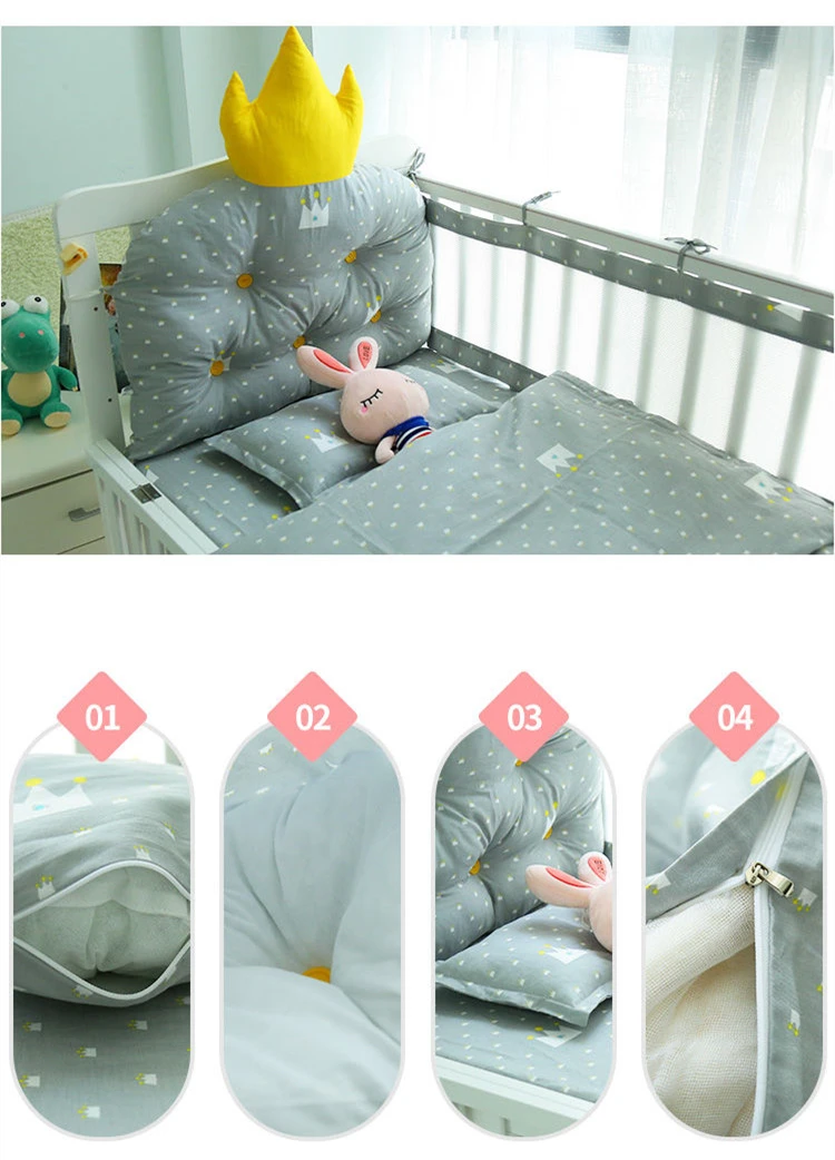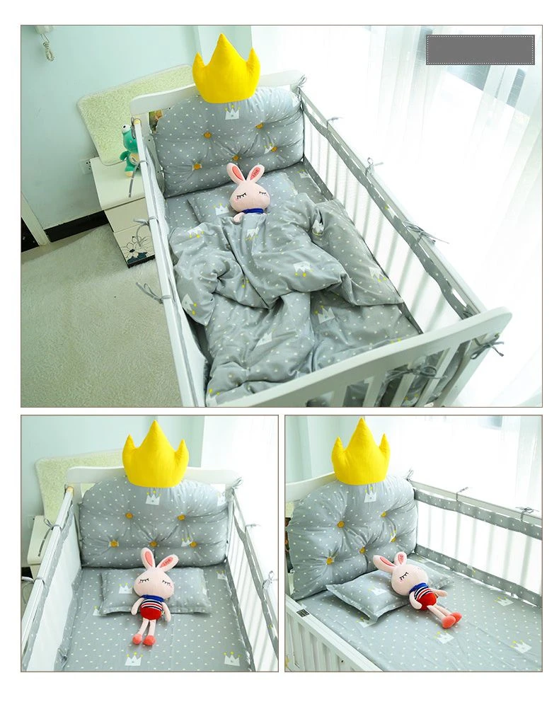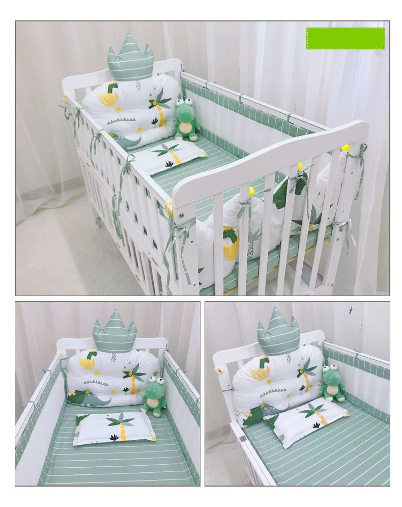 Juego de 5 piezas=1 pieza de parachoques de corona corta + 2 piezas de parachoques largos + 1 pieza de parachoques corto + 1 pieza de sábana