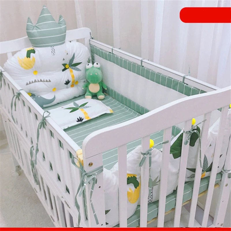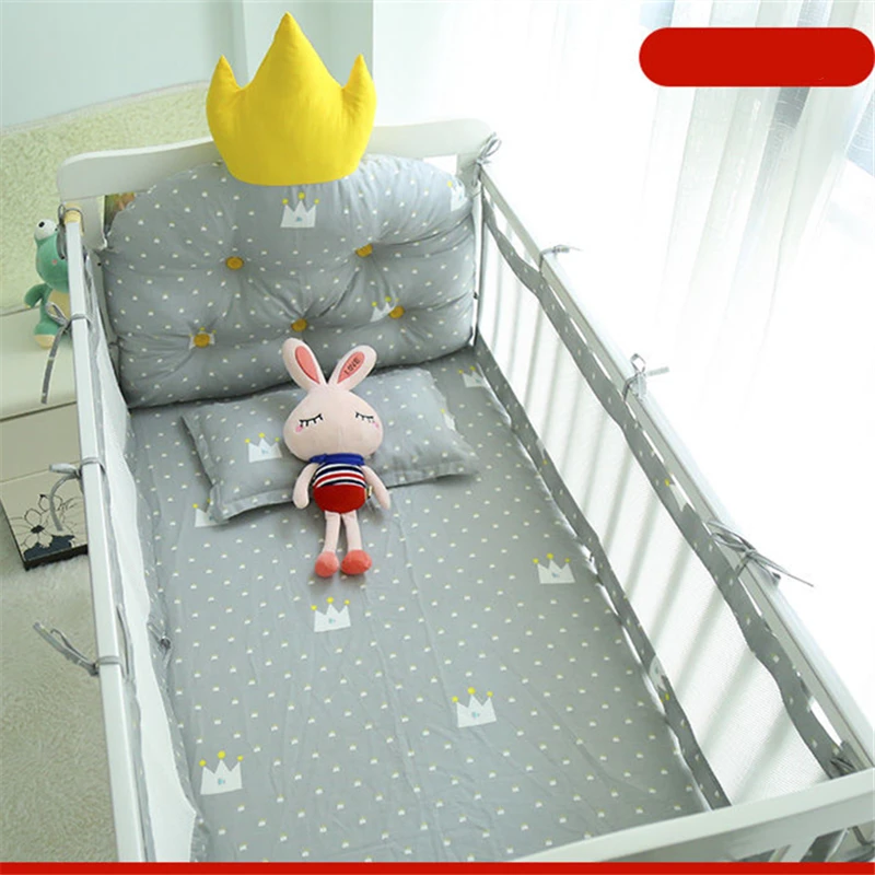 Juego de 5 piezas=1 pieza de parachoques de corona corta + 2 piezas de parachoques largos + 1 pieza de parachoques corto + 1 pieza de sábana