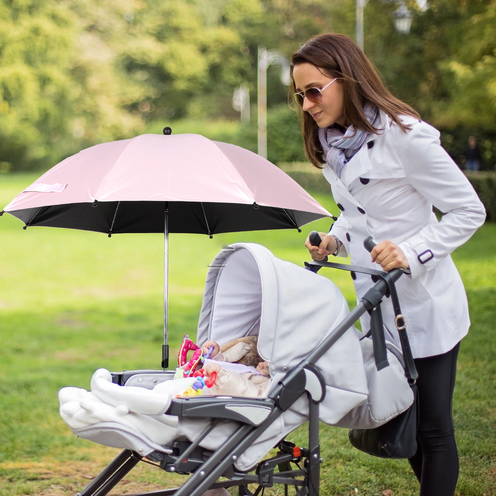- Diseño de ángulo ajustable, puede ajustarlo según sus demandas, el paraguas para cochecito es adecuado para uso en exteriores.paraguas para cochecito