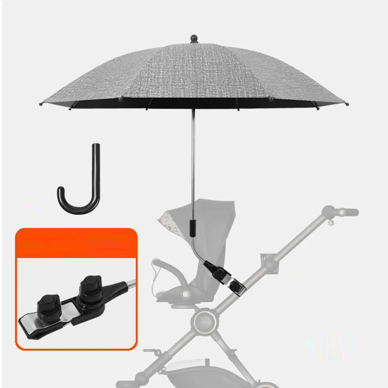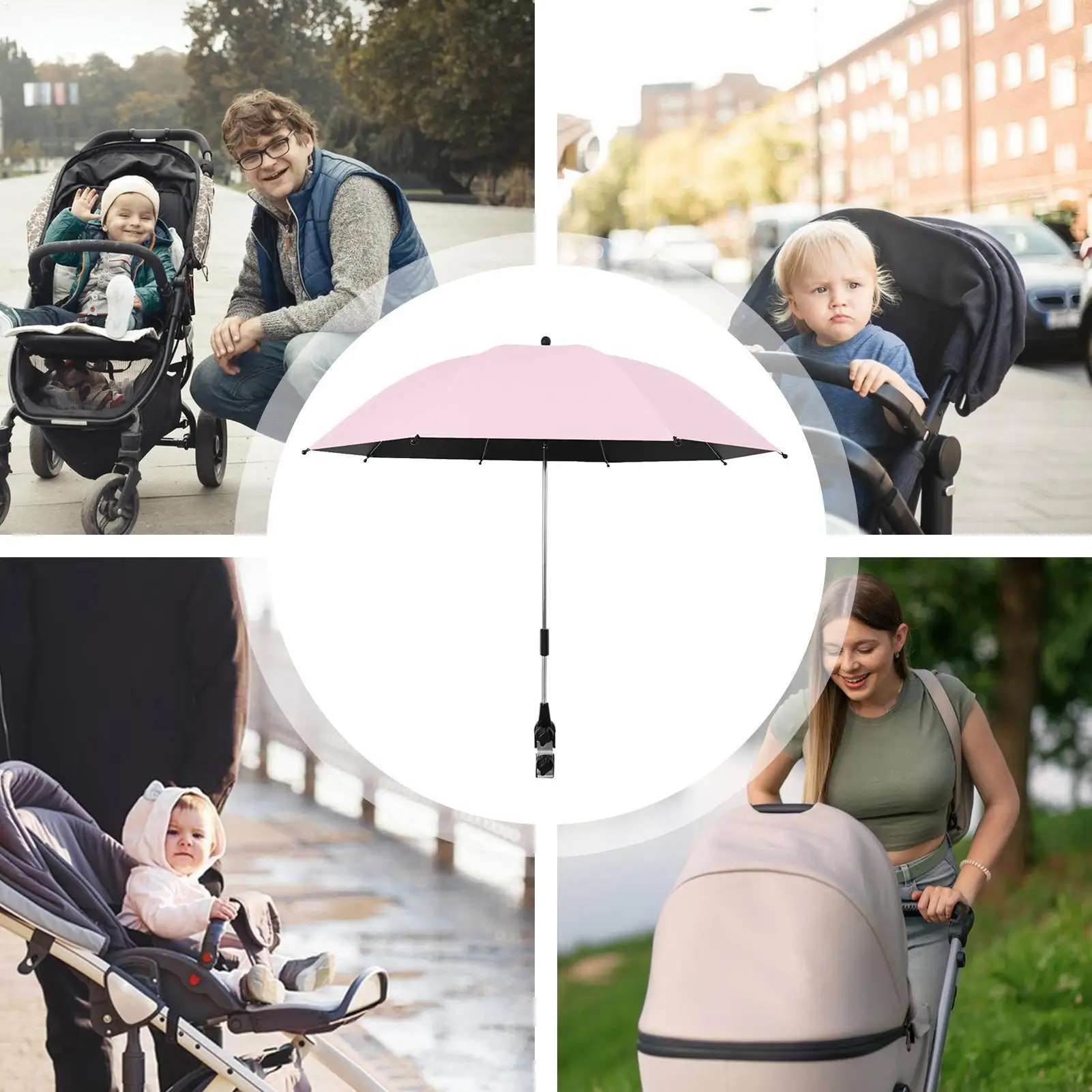 El paraguas para cochecito proporciona una protección solar confiable y es resistente al agua para todas las condiciones climáticas.Su diseño ajustable garantiza un uso seguro y suave mientras camina con su bebé o usa un cochecito.Perfecto para cochecitos de bebé, triciclos, compras y viajes, el paraguas se pliega fácilmente para su transporte, lo que lo convierte en un compañero versátil para los padres.