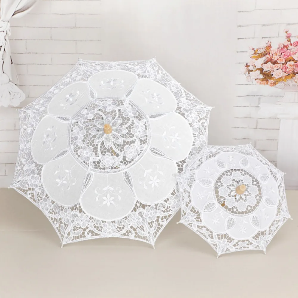 Material: tela de seda + sombrilla de encaje + mango de madera