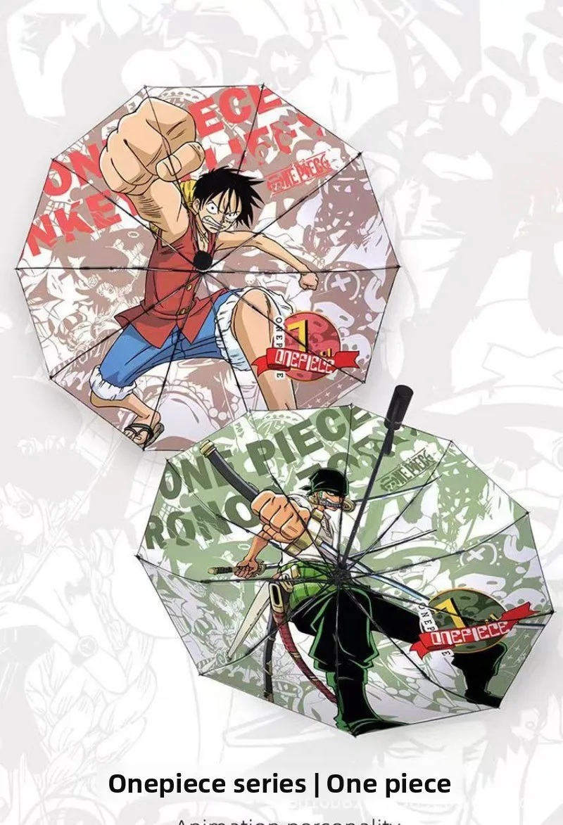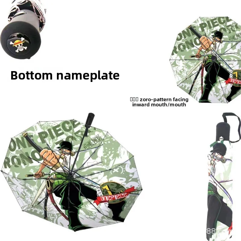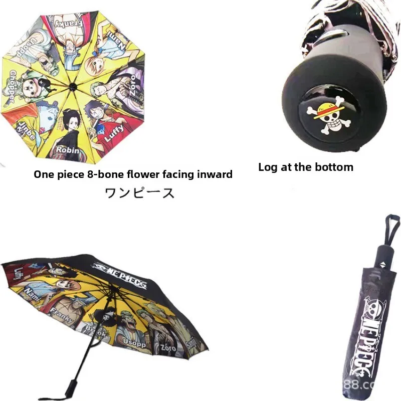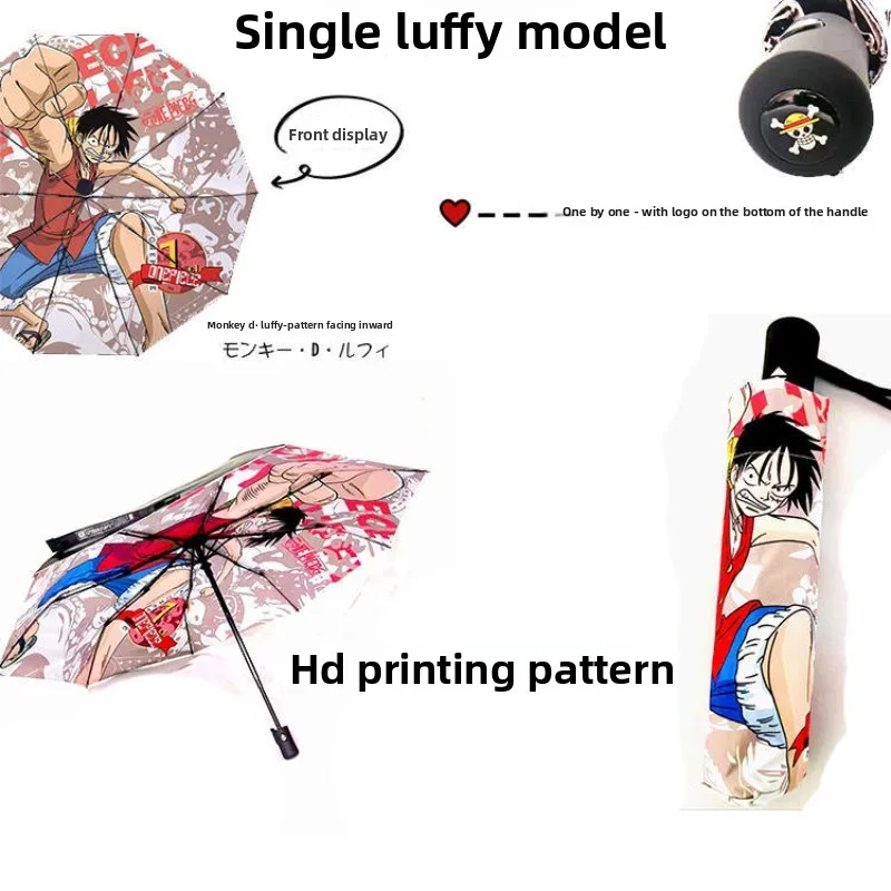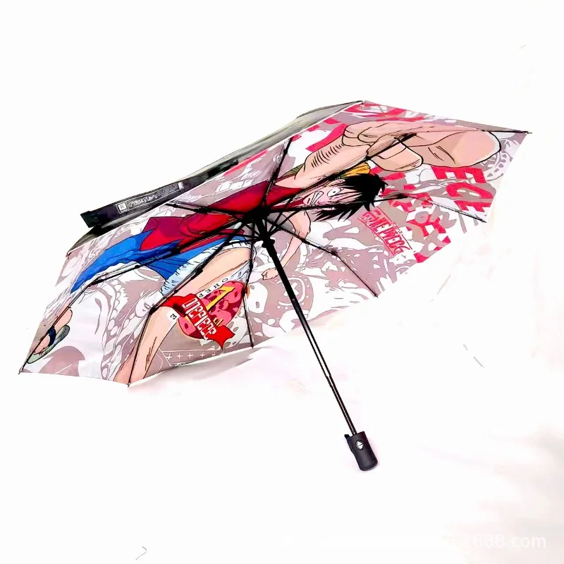 Paraguas de ONE PIECE Luffy Anime, sombrilla portátil, tela de impacto de goma negra de 8 huesos, paraguas semiautomático de tres pliegues