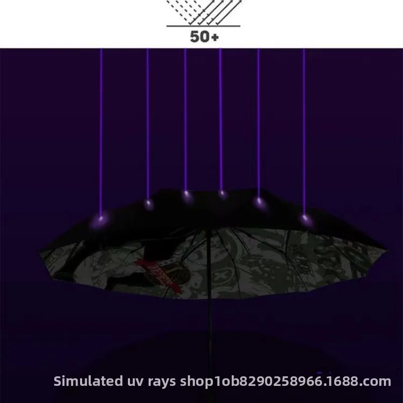 Paraguas de ONE PIECE Luffy Anime, sombrilla portátil, tela de impacto de goma negra de 8 huesos, paraguas semiautomático de tres pliegues - imagen 5