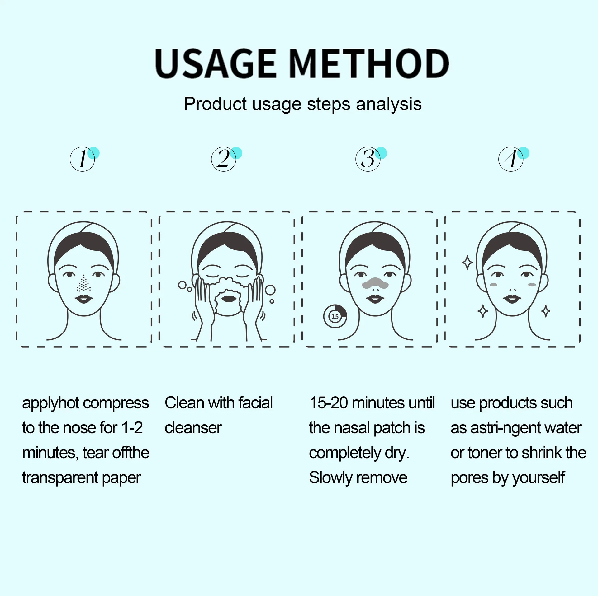 1.Potente eliminación de puntos negros: nuestro parche para la nariz de puntos negros pega eficazmente la suciedad del interior de los poros, dejando la nariz limpia y fresca.