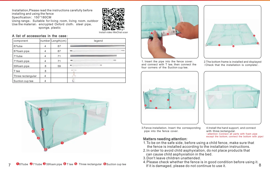Llegó tal como se indicó. Estamos muy satisfechos con el recinto. Material de alta calidad, todas las piezas estaban incluidas en el kit, y también había instrucciones de montaje. Se ensambla rápida y fácilmente, lo terminé en unos 10 minutos. Tenemos un apartamento pequeño, así que es perfecto para nosotros, y el bebé no se siente apretado. Me siento más feliz que el bebé. ☺️