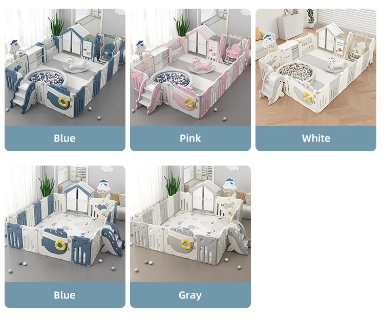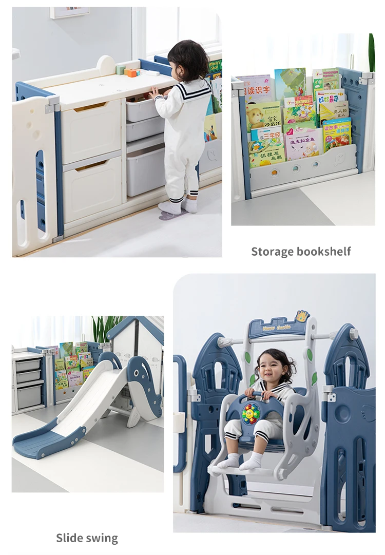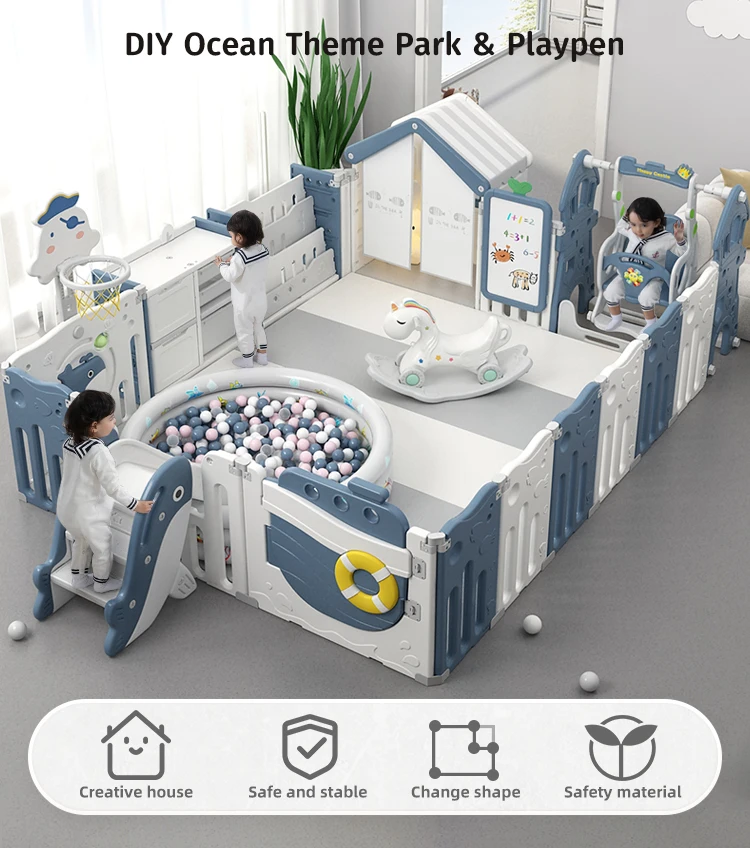 Parque infantil de plástico para exteriores para bebés, patio de juegos deslizante, puerta de seguridad grande, columpio para niños, valla plegable, parque interior para bebés