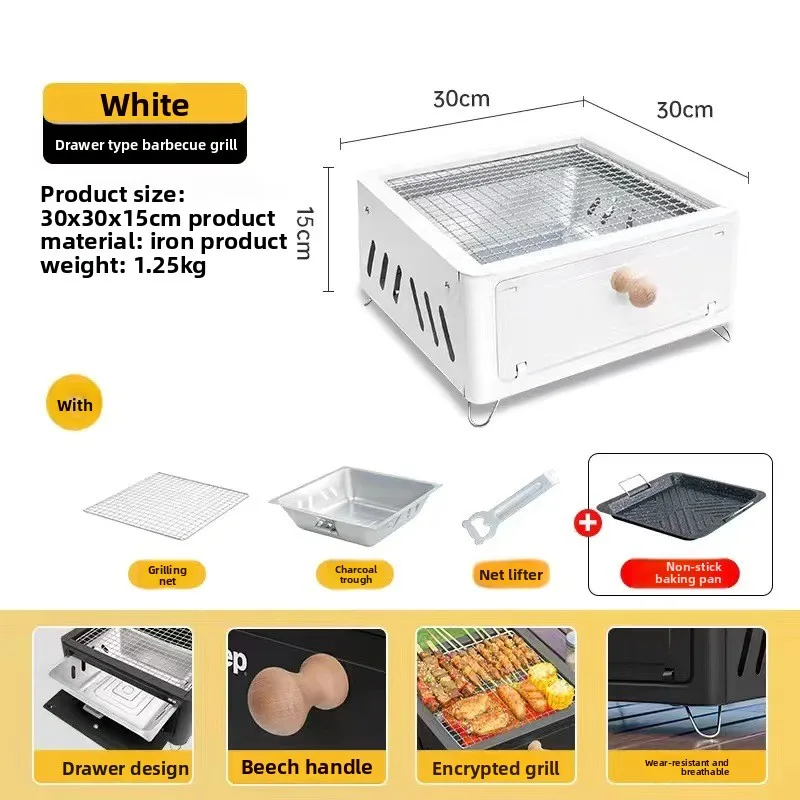 Parrilla de barbacoa para patio de acampada, estante de barbacoa de carbón portátil para exteriores, lavabo cuadrado para fuego, herramienta plegable para barbacoa de Picnic