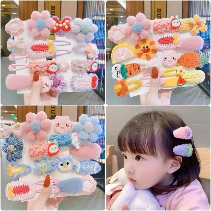 Pasador de pelo de felpa coreano para niñas, pasadores de lazo Floral lindo, tocado de bebé, accesorios para el cabello para niñas, pinzas para el cabello de princesa, Invierno