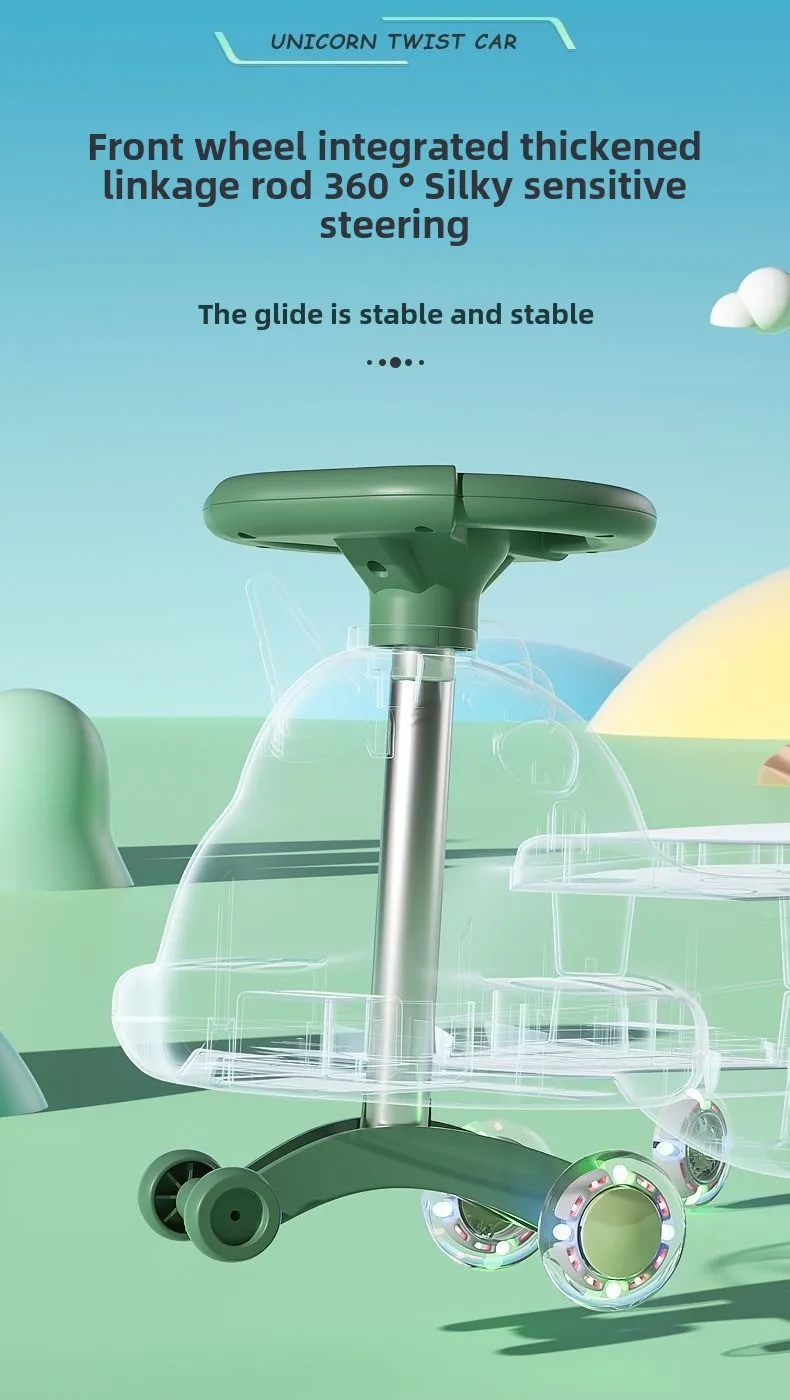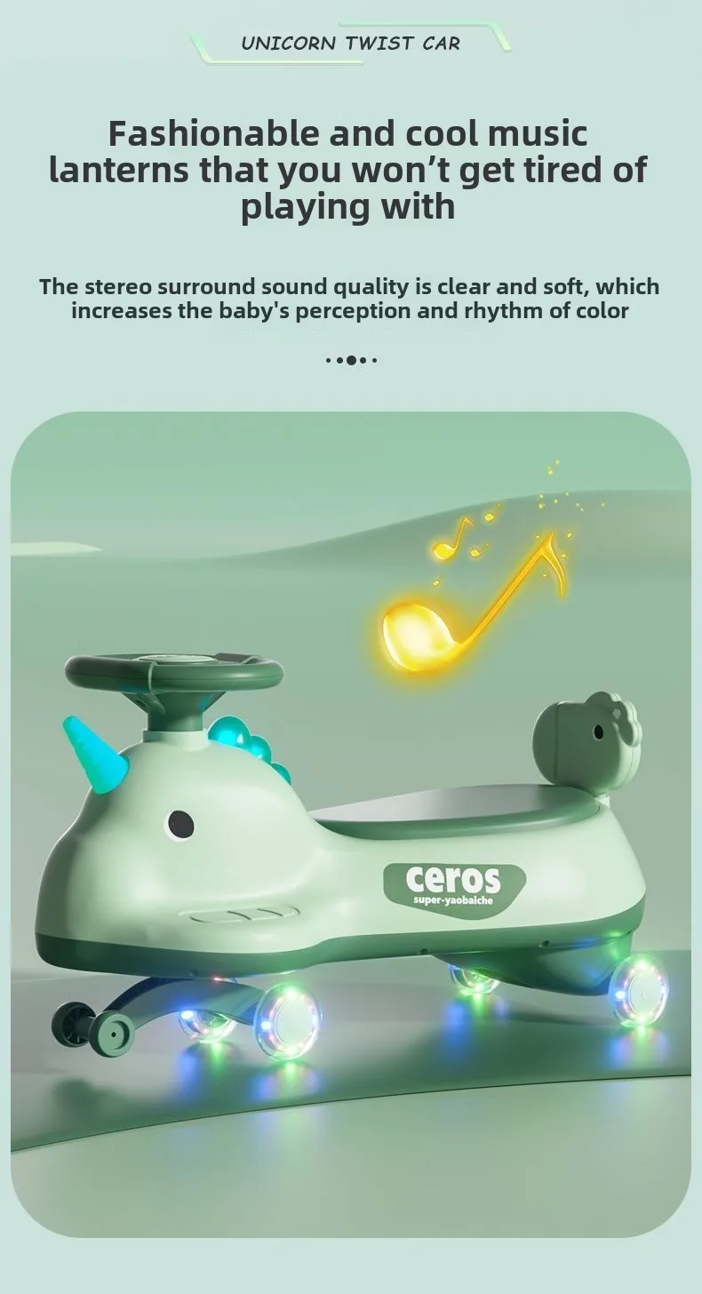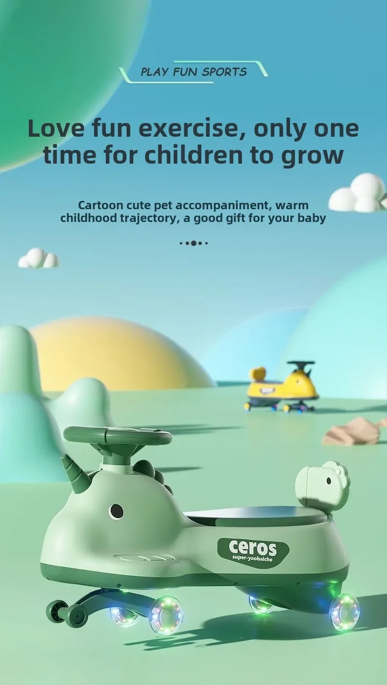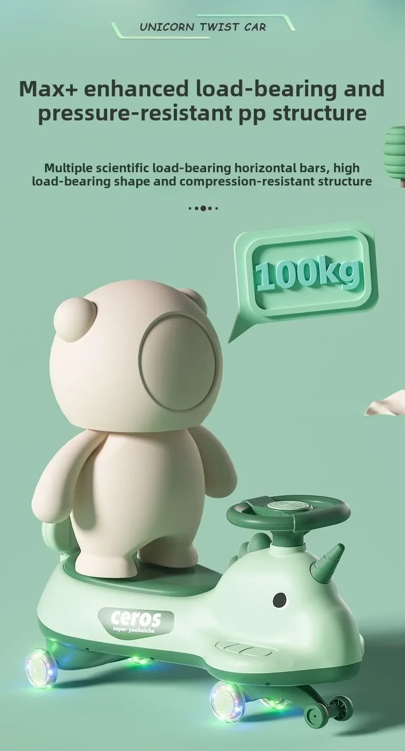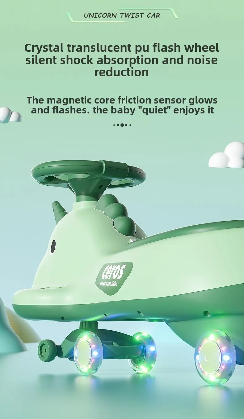 Paseo giratorio antimunta en coche para niños pequeños 1-3 luz LED 360 ° Ruedas silenciosas Diseño giratorio resistente para juegos en interiores Primer regalo de cumpleaños