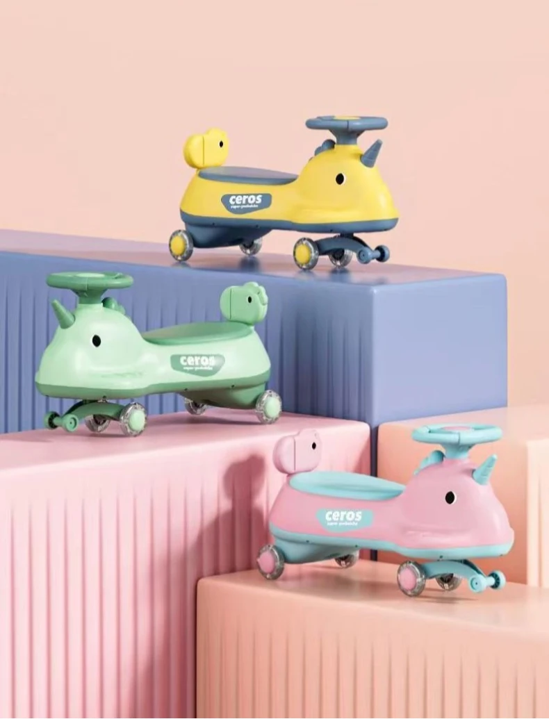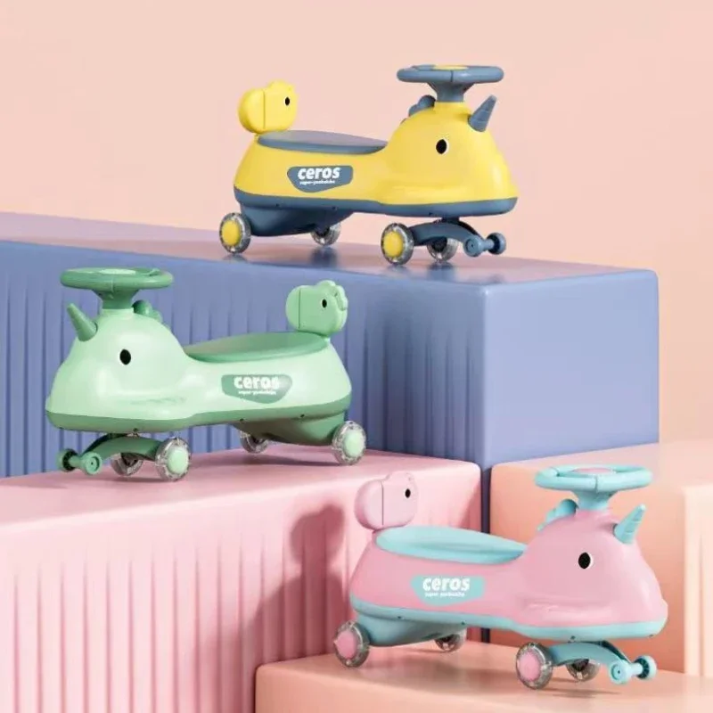 Comprar Paseo giratorio antimunta en coche para niños pequeños 1-3 luz LED 360 ° Ruedas silenciosas Diseño giratorio resistente para juegos en interiores Primer regalo de cumpleaños