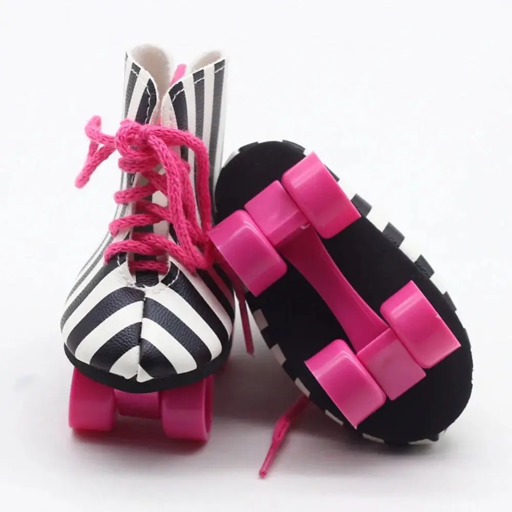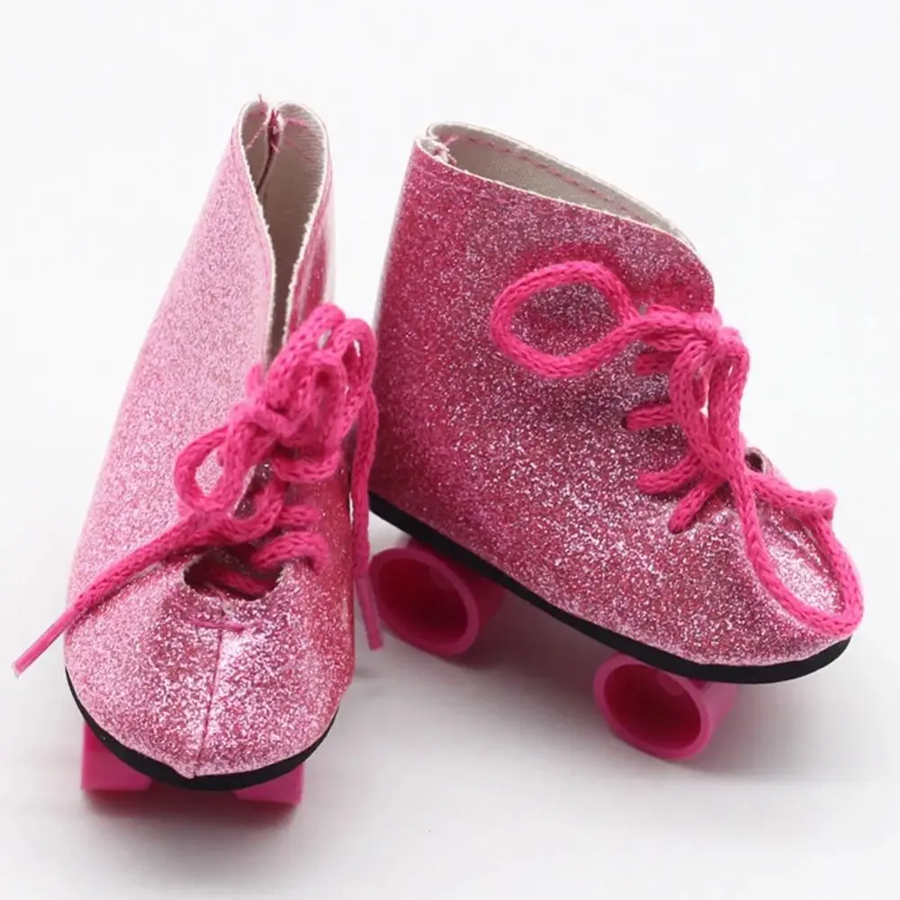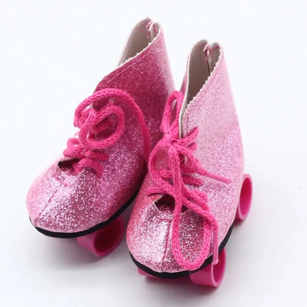 Comprar Patines de ruedas con purpurina rosa para muñeca BJD, Mini patines de ruedas Kawaii, botas de hielo para muñecas americanas de 18 pulgadas