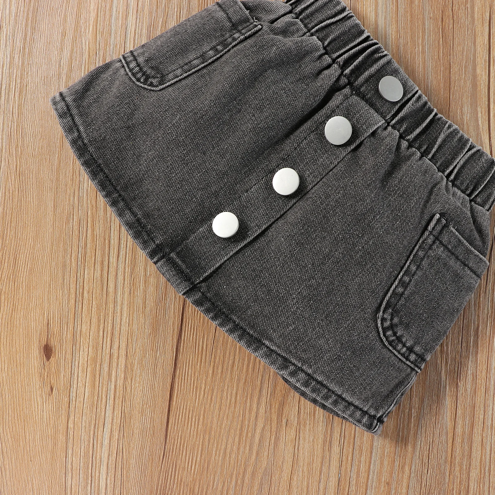 Comprar PatPat-body de manga corta y cuello con volantes para niña, conjunto de Falda vaquera de punto acanalado, 2 piezas