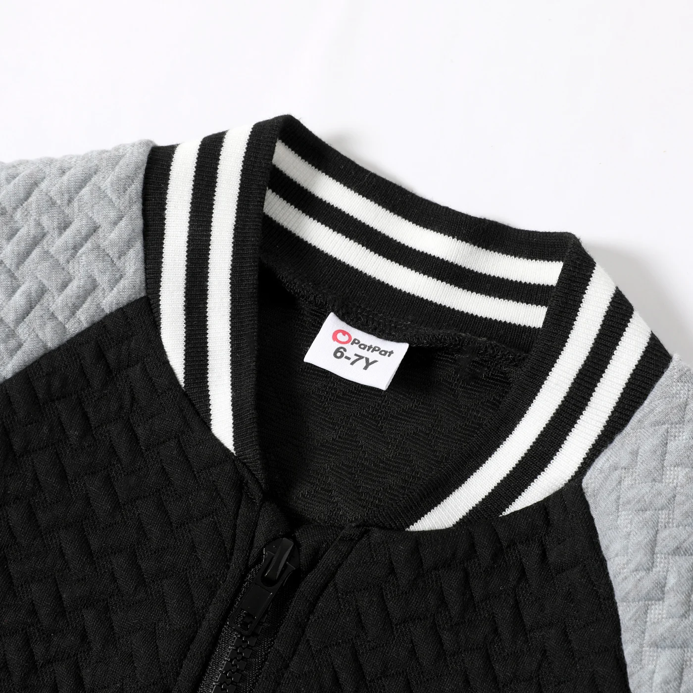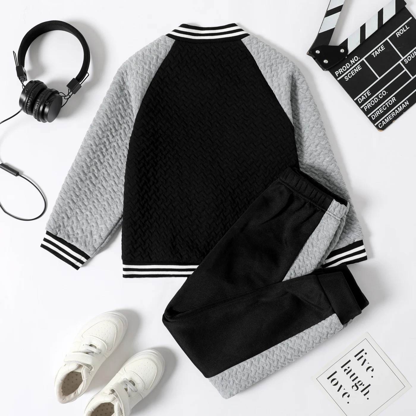 Comprar PatPat Conjunto de dos piezas para niños, chaqueta y pantalones con cremallera a rayas y bloques de color texturizado, traje informal